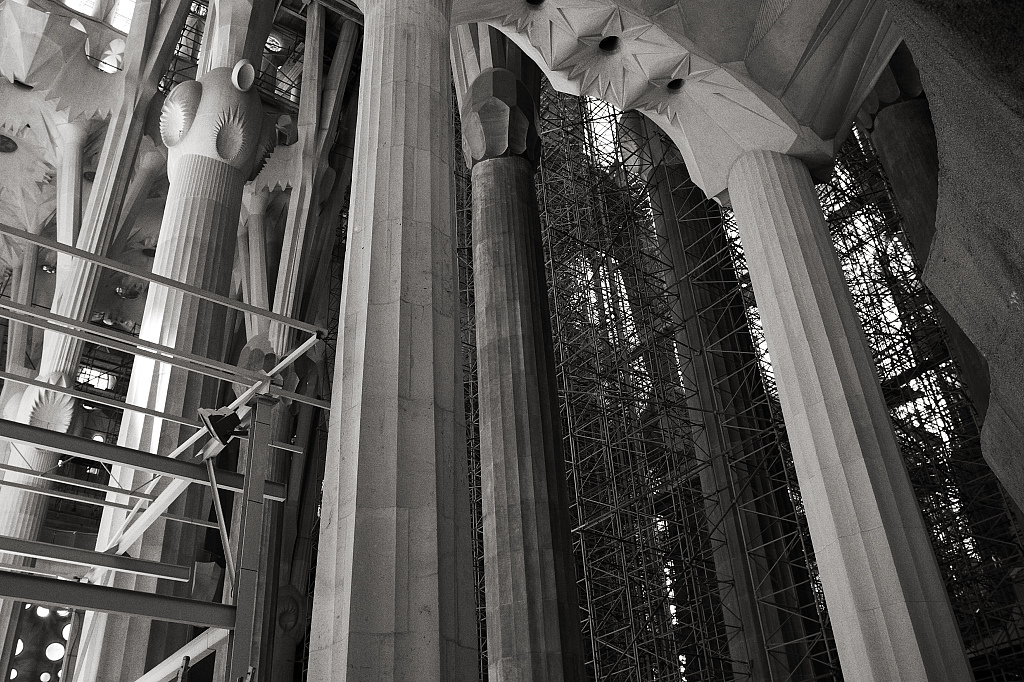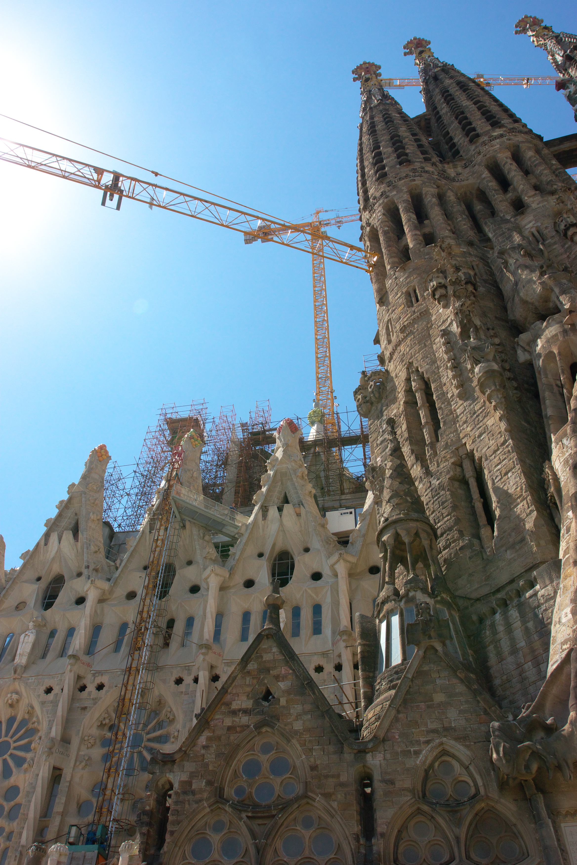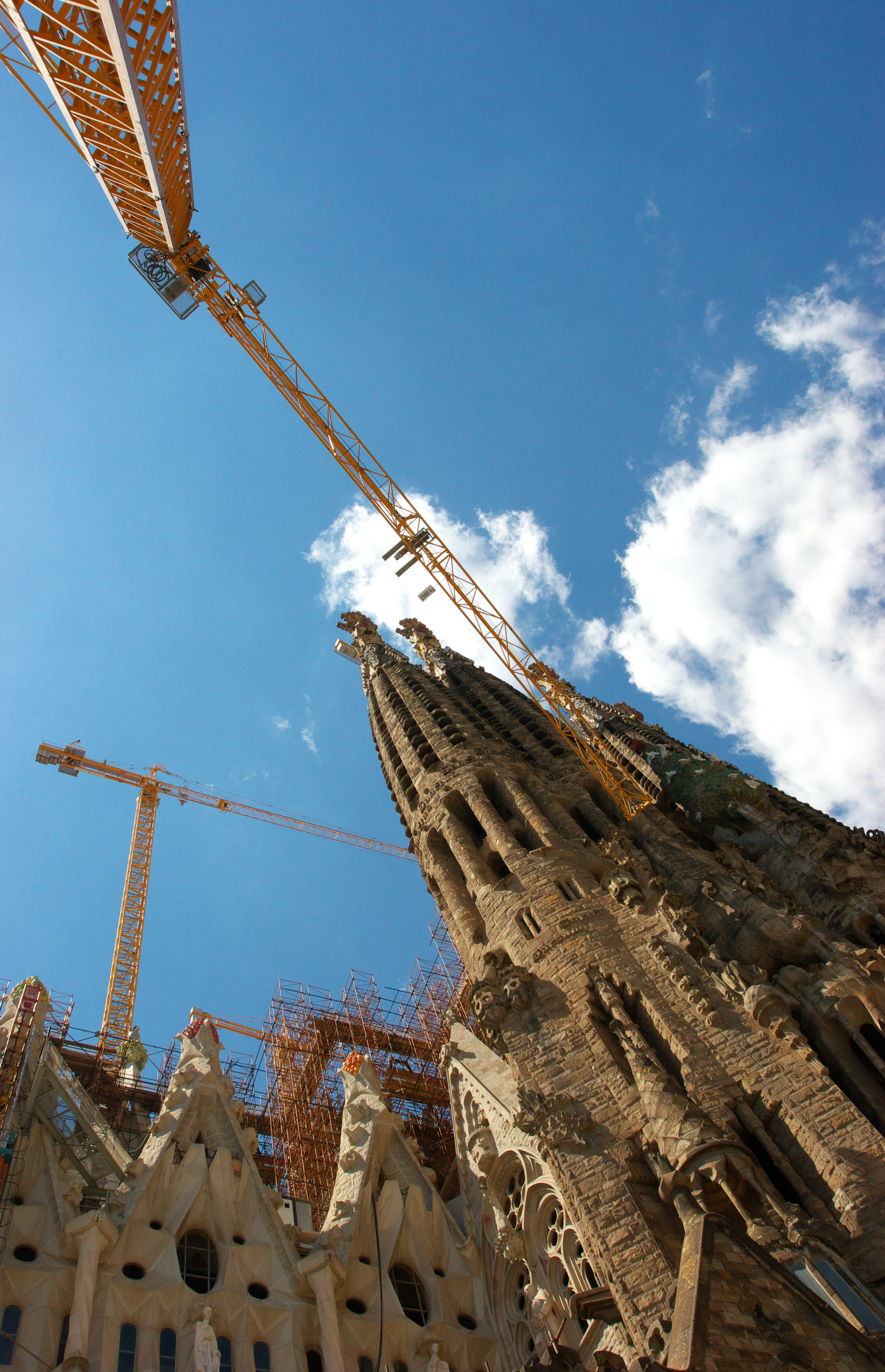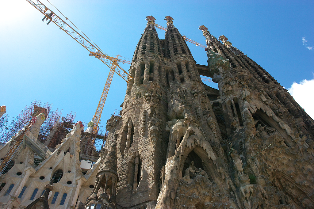 サグラダ・ファミリアはずっと工事をし続けています。実は最初に設計をしたのはガウディではありません。彼は途中から引き継いだのです。そして、今も大工さんの手によって引き継がれています。