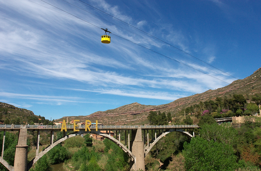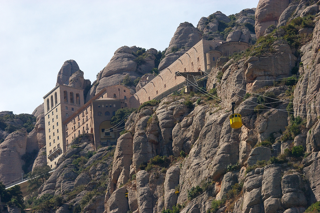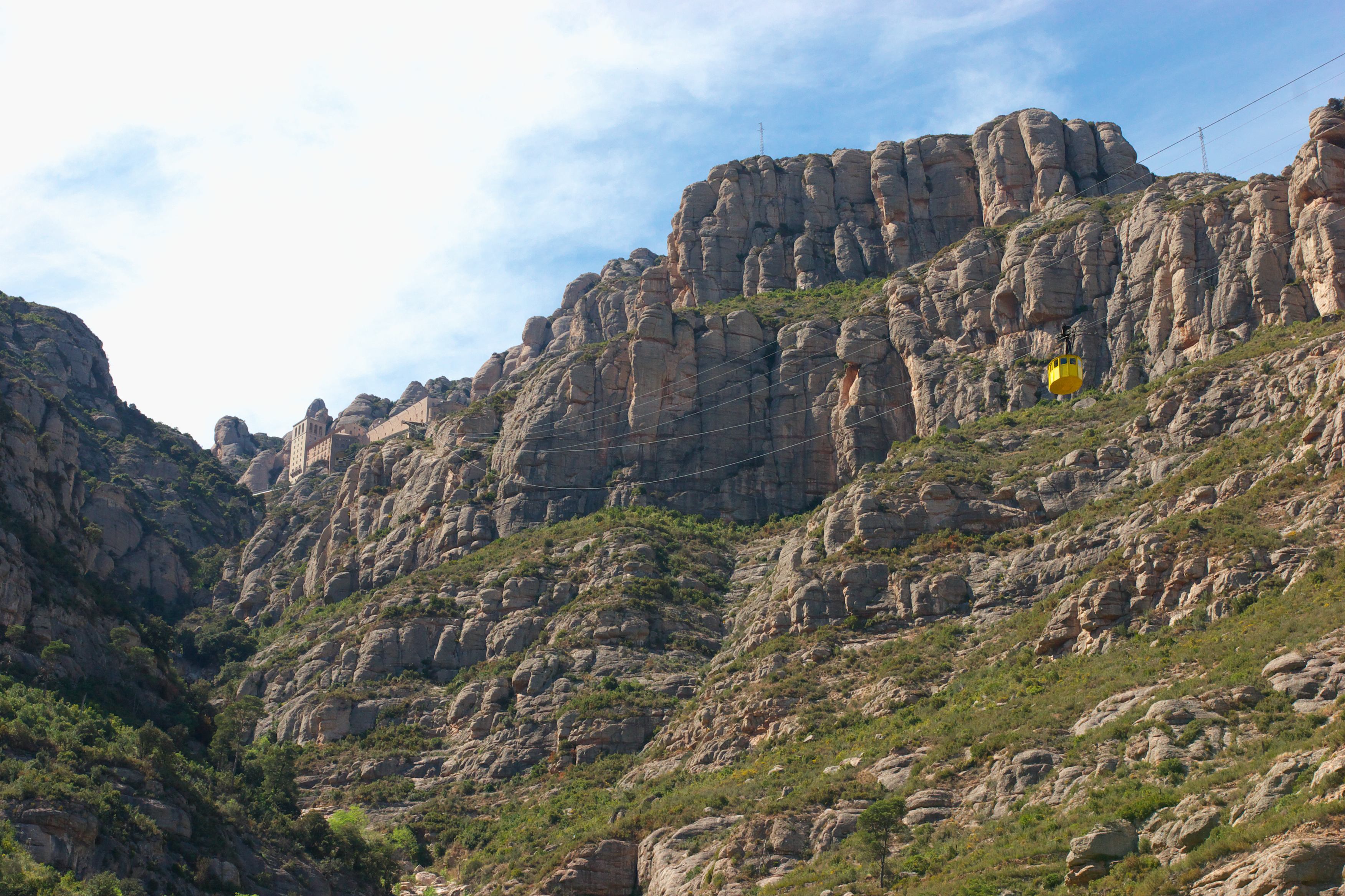 モンセラットへと昇っていくロープウェイです。青い空に黄色いゴンドラが映えます。