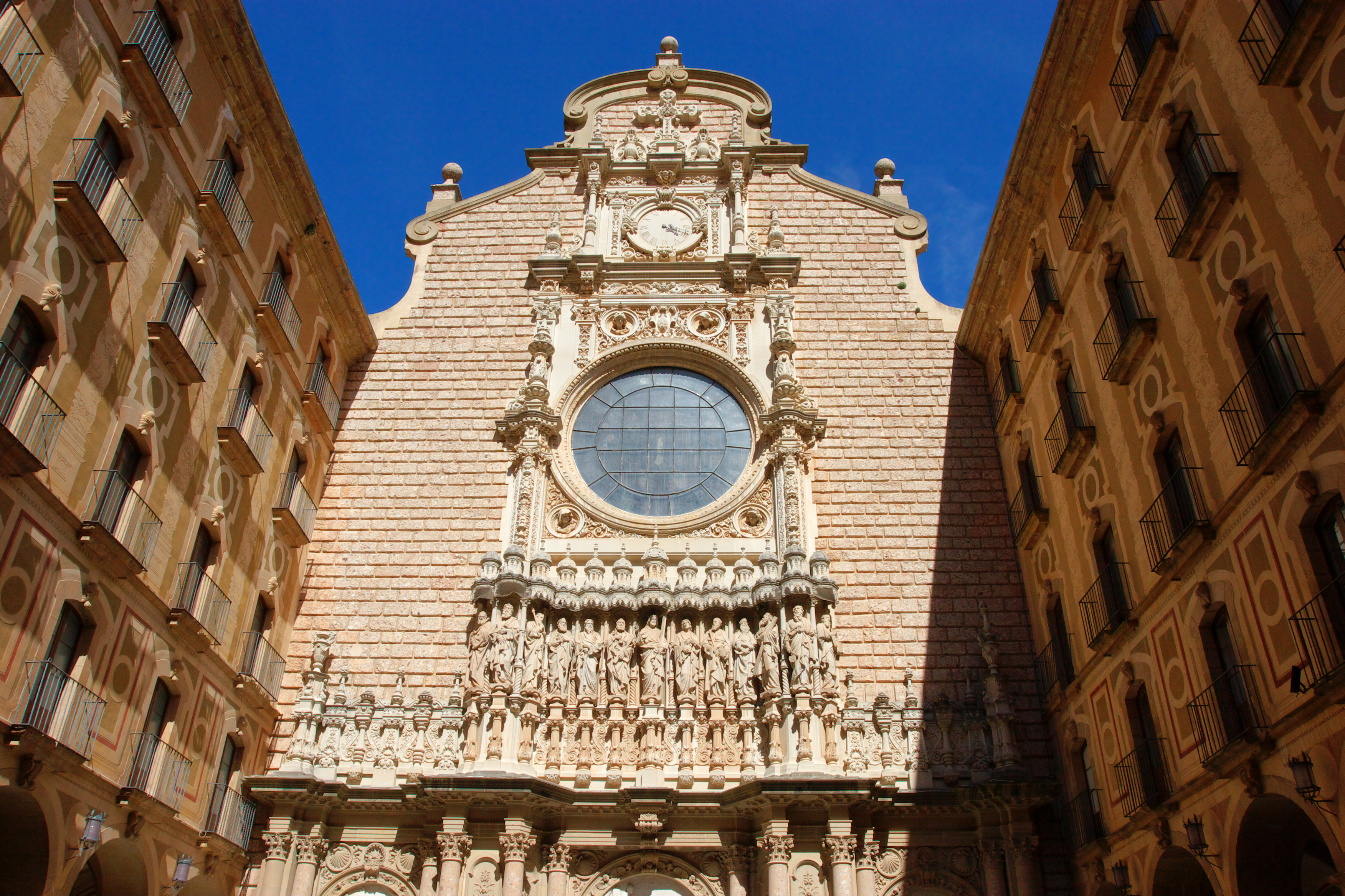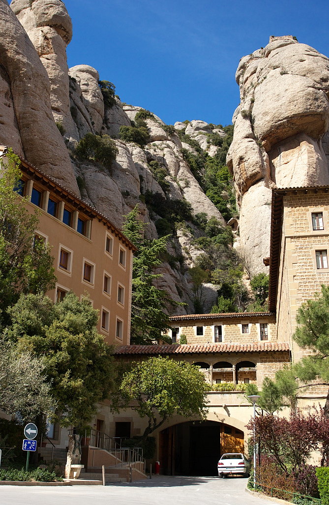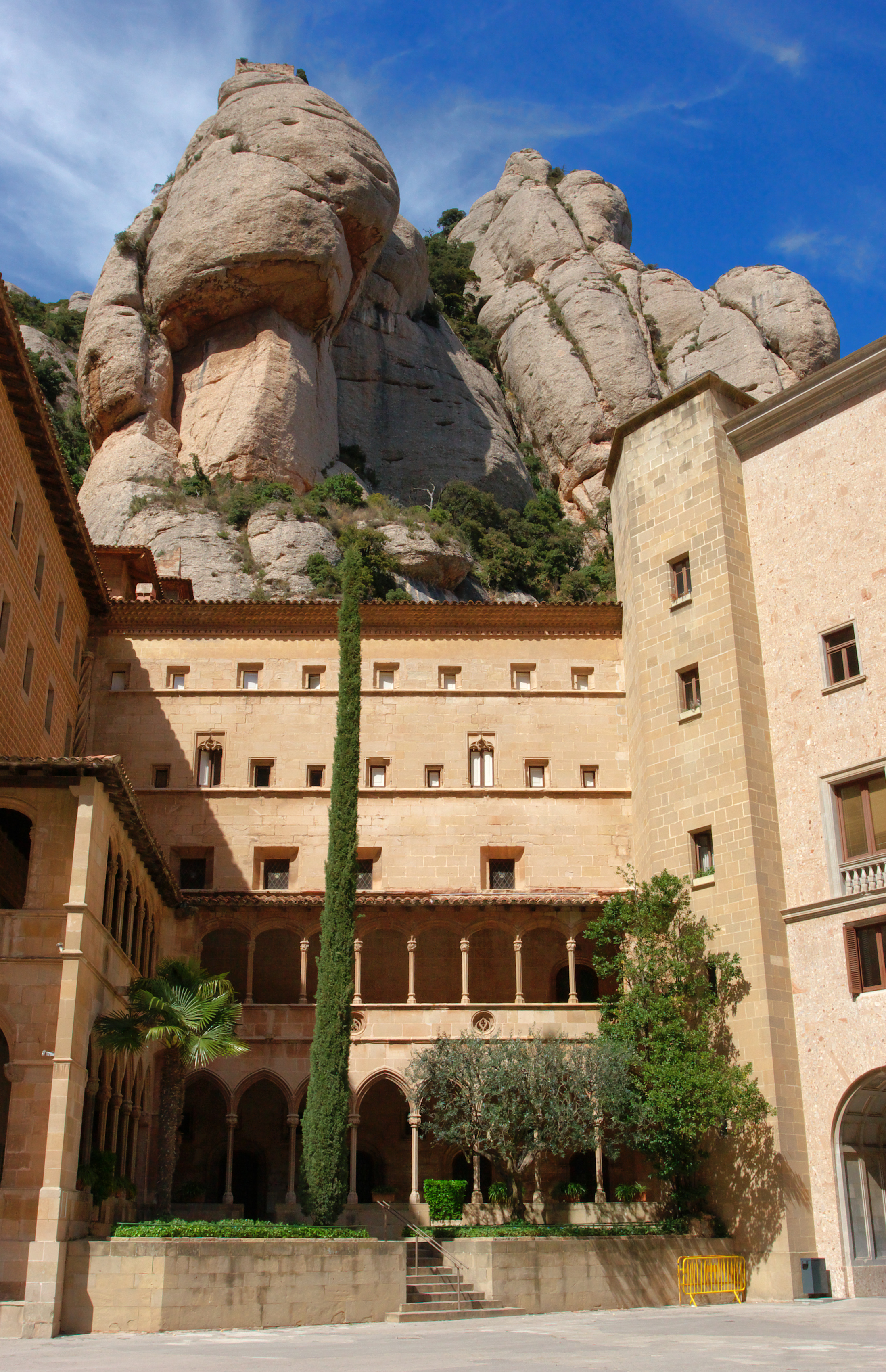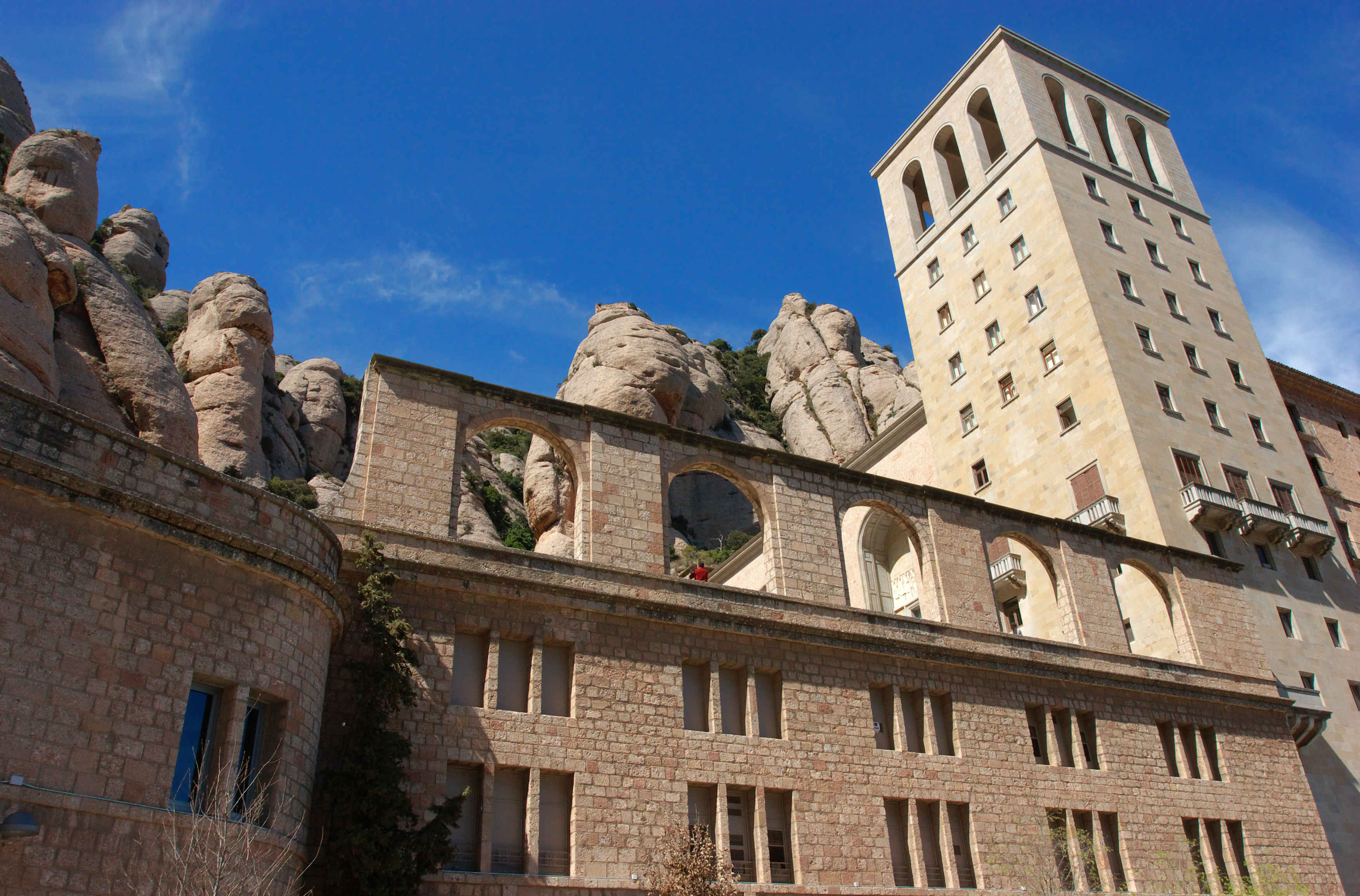 さんさんと降り注ぐ太陽の下、山頂に建つ修道院。