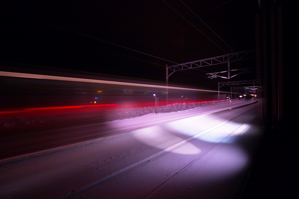 乗客が寝静まった頃、密かにすれ違う夜行列車同士。