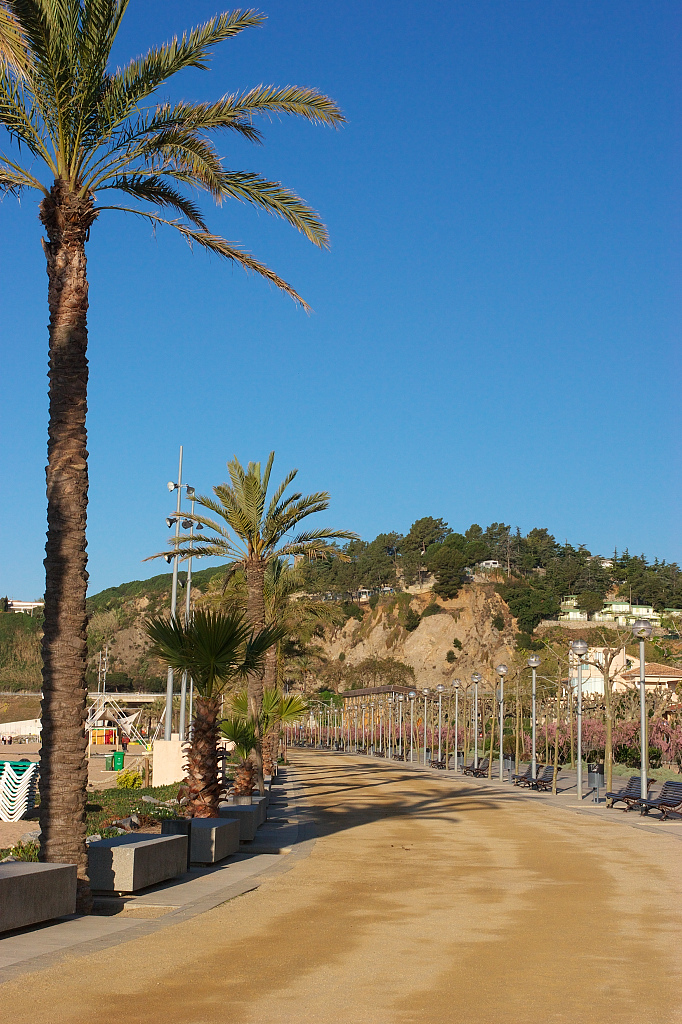 朝の地中海沿岸の砂浜です。誰もいないので、独占しているような気分です。