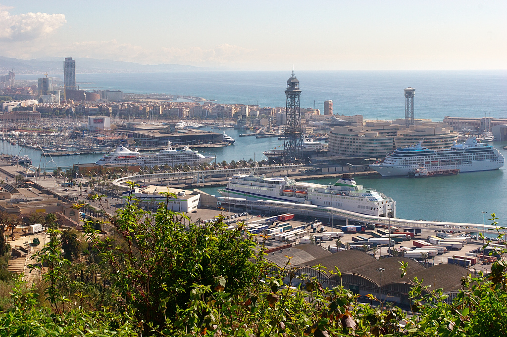 高台にある公園の展望台から眺めたバルセロナの市街と港です。