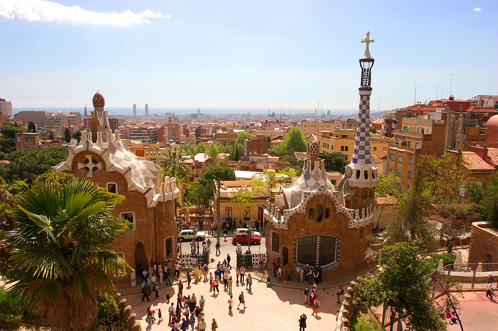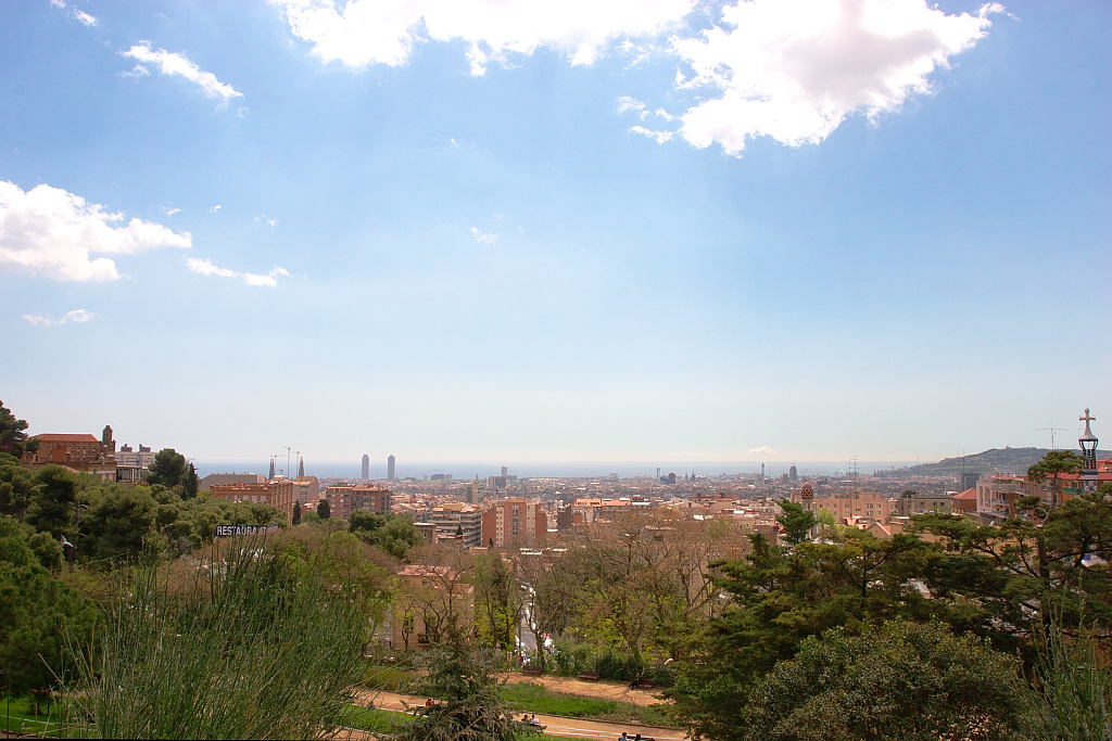 グエル公園から見たバルセロナ市街方面。遙かかなたに海が見えます。