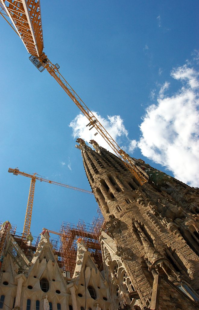 サグラダ・ファミリアは、その大半が工事中です。世界遺産にはいろいろありますが、工事現場が世界遺産になっているのはここだけでしょう。