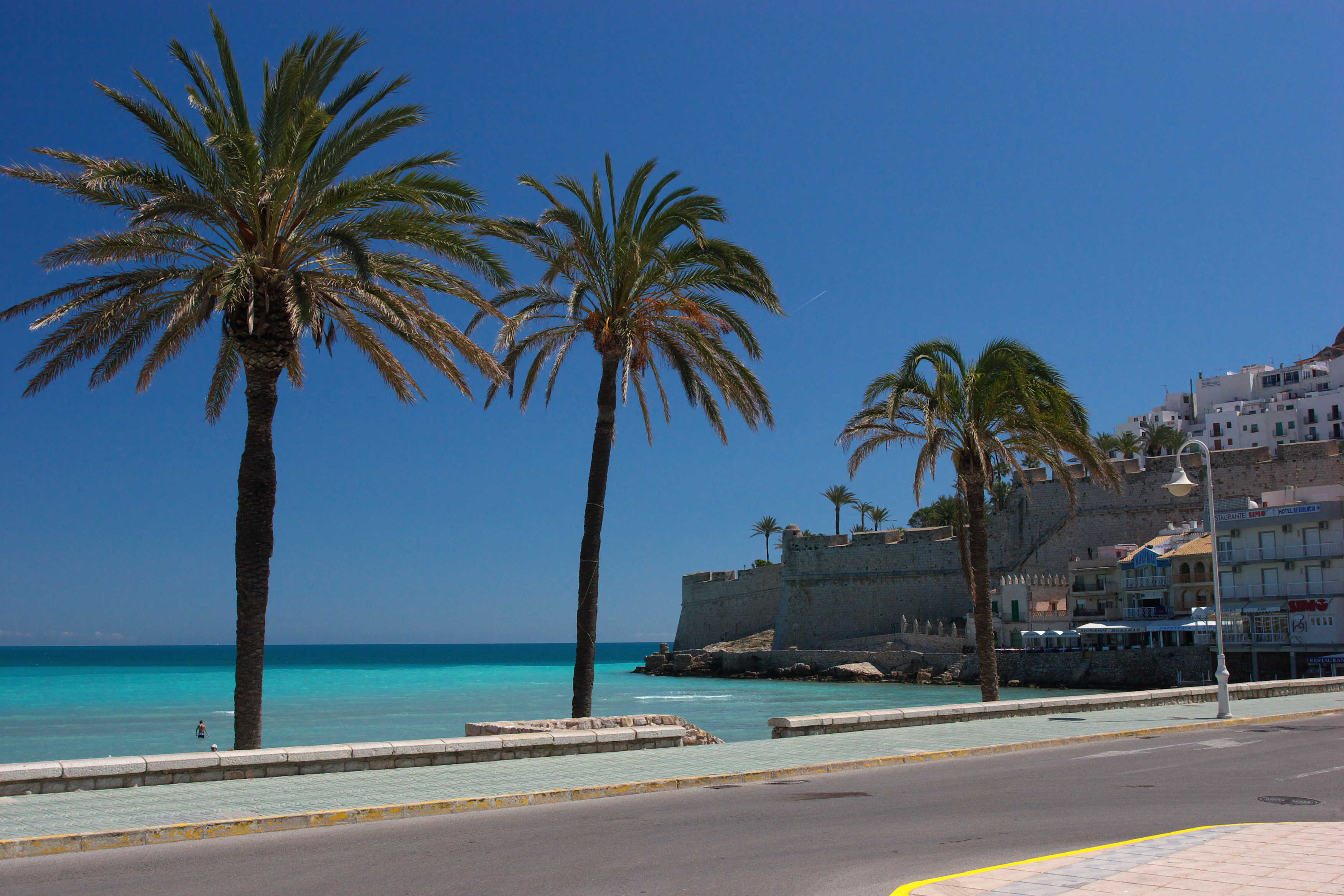 青い地中海をバックに並ぶ椰子の木。