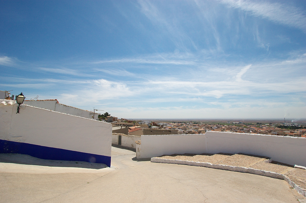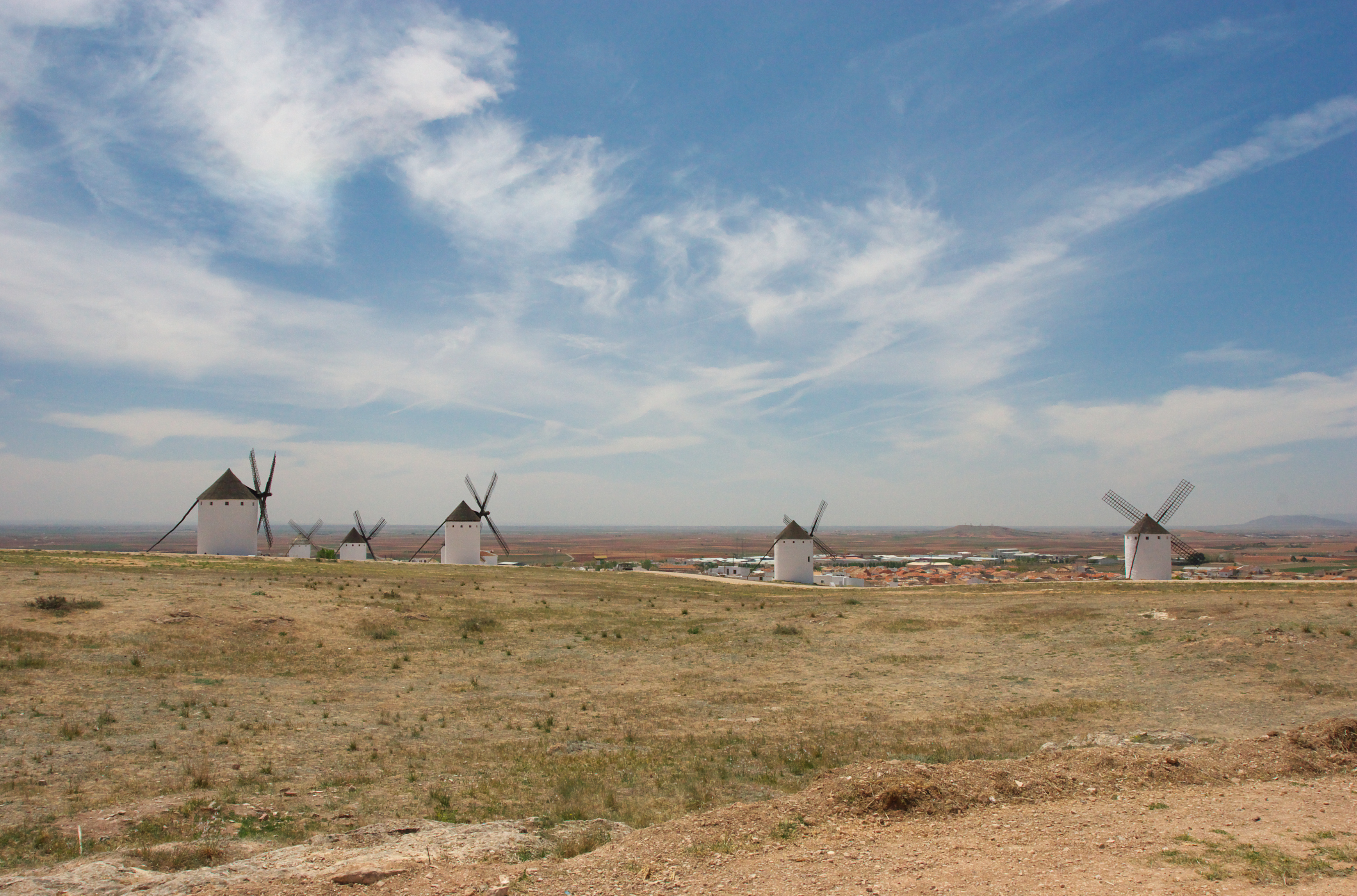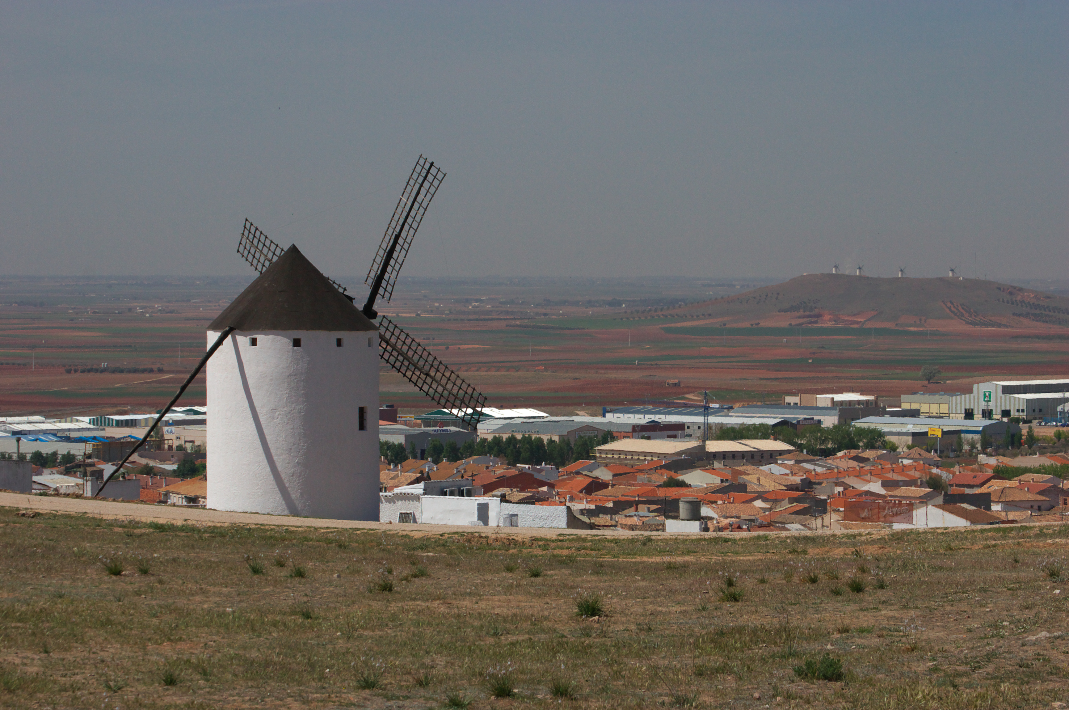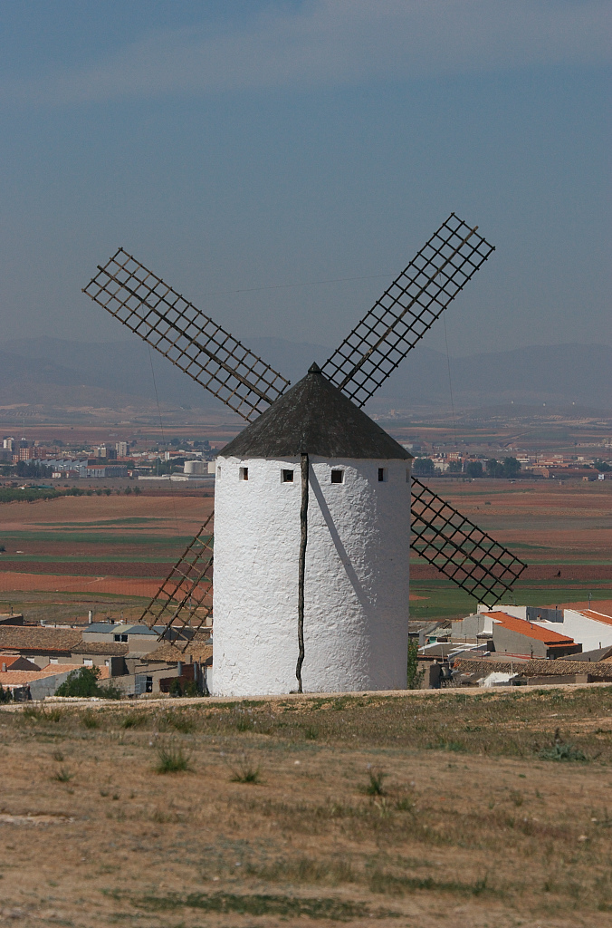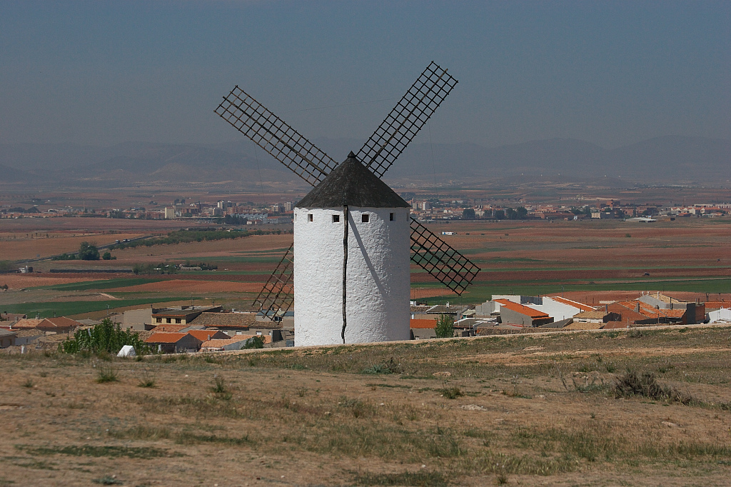 風車の頭が見えるコンスエグラの町です。