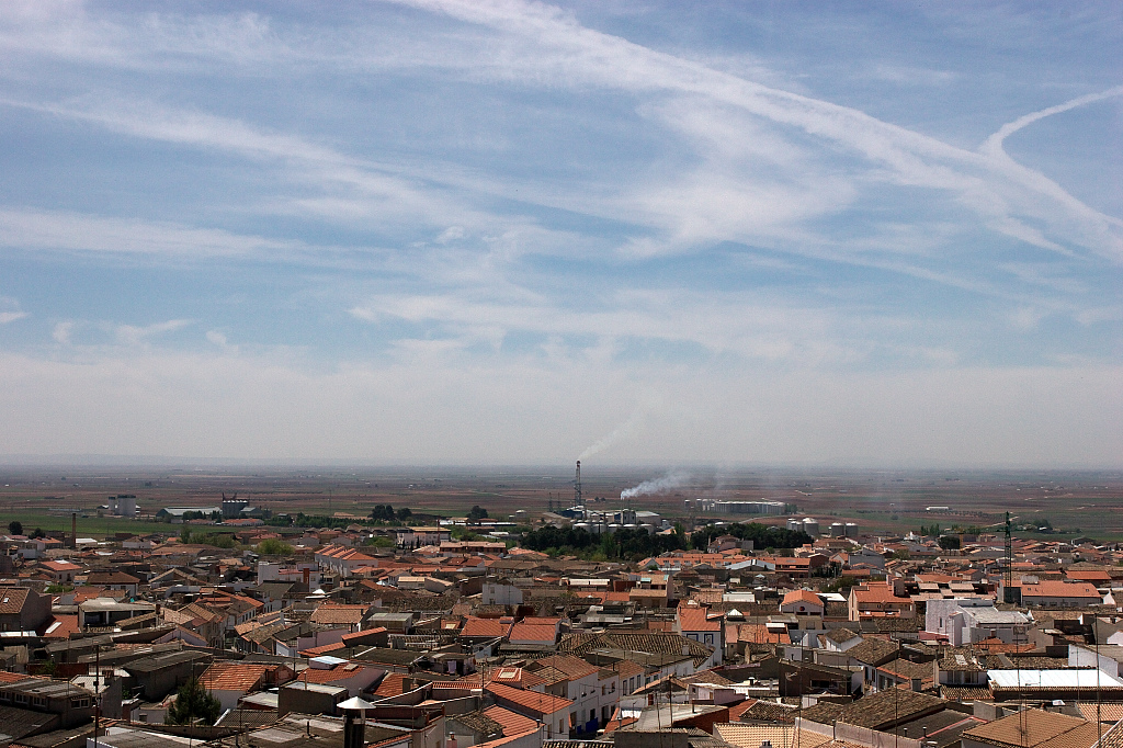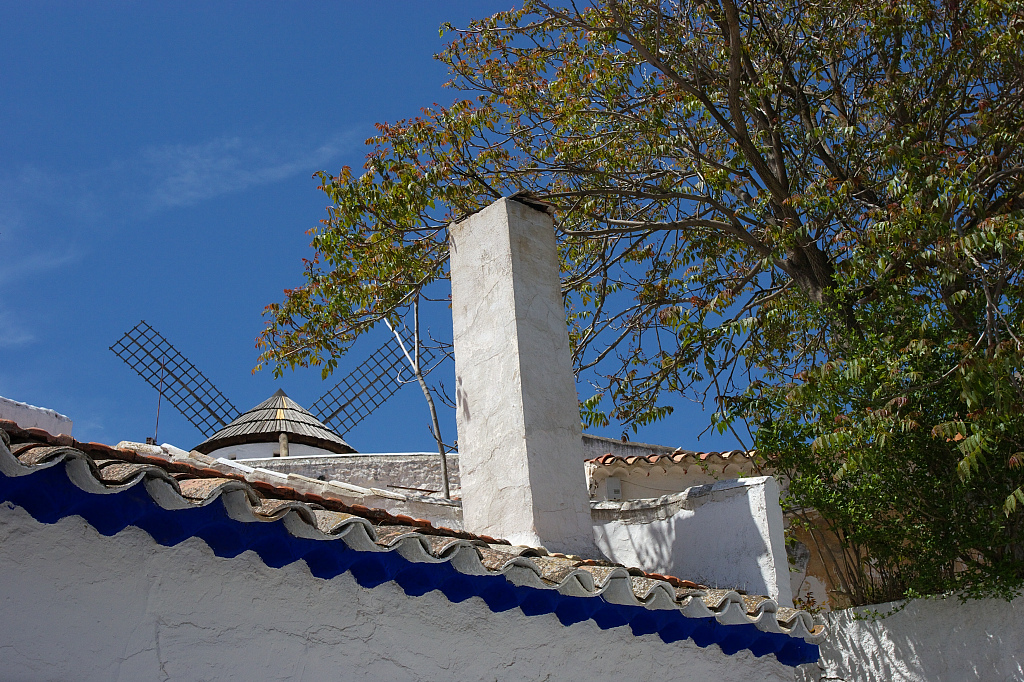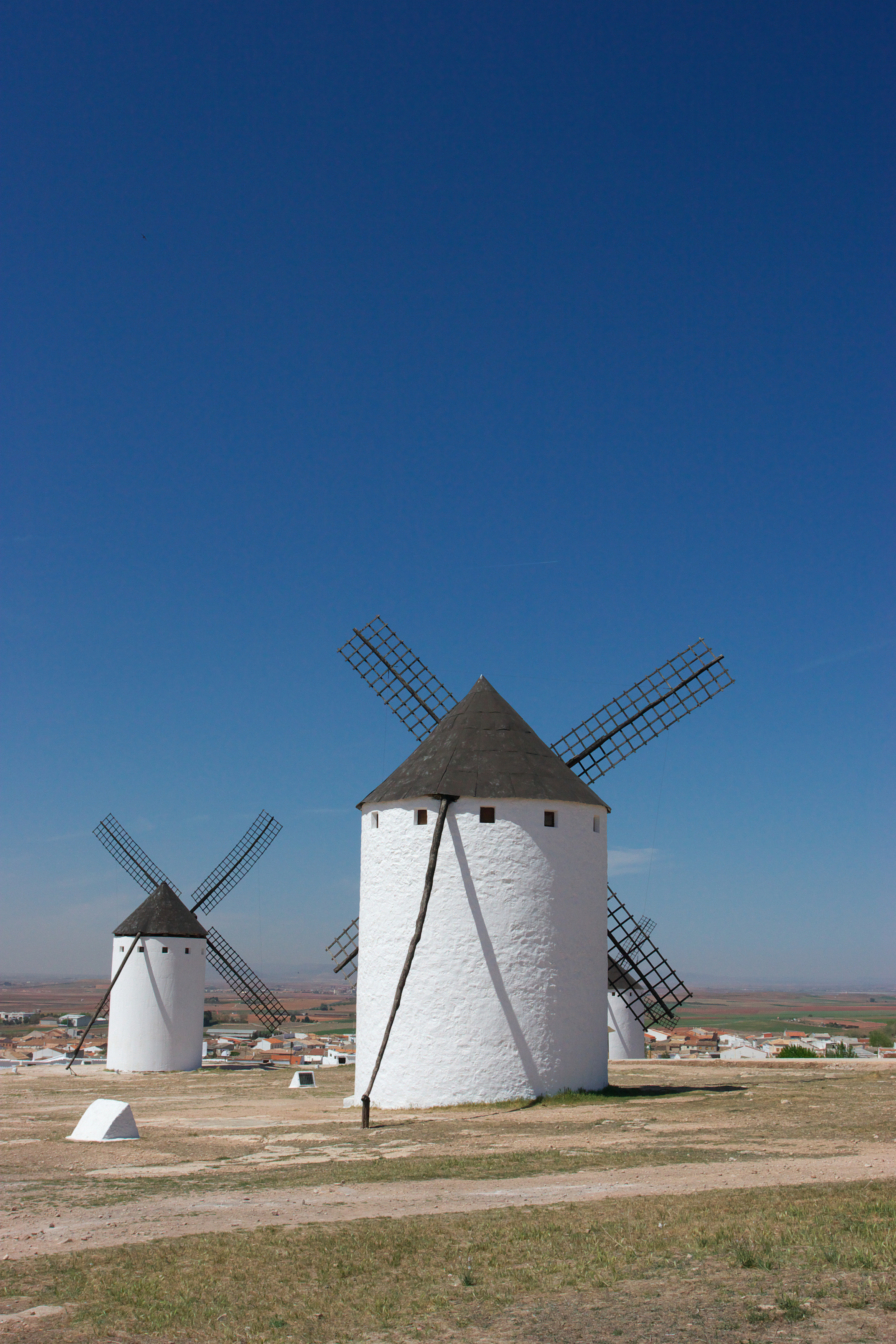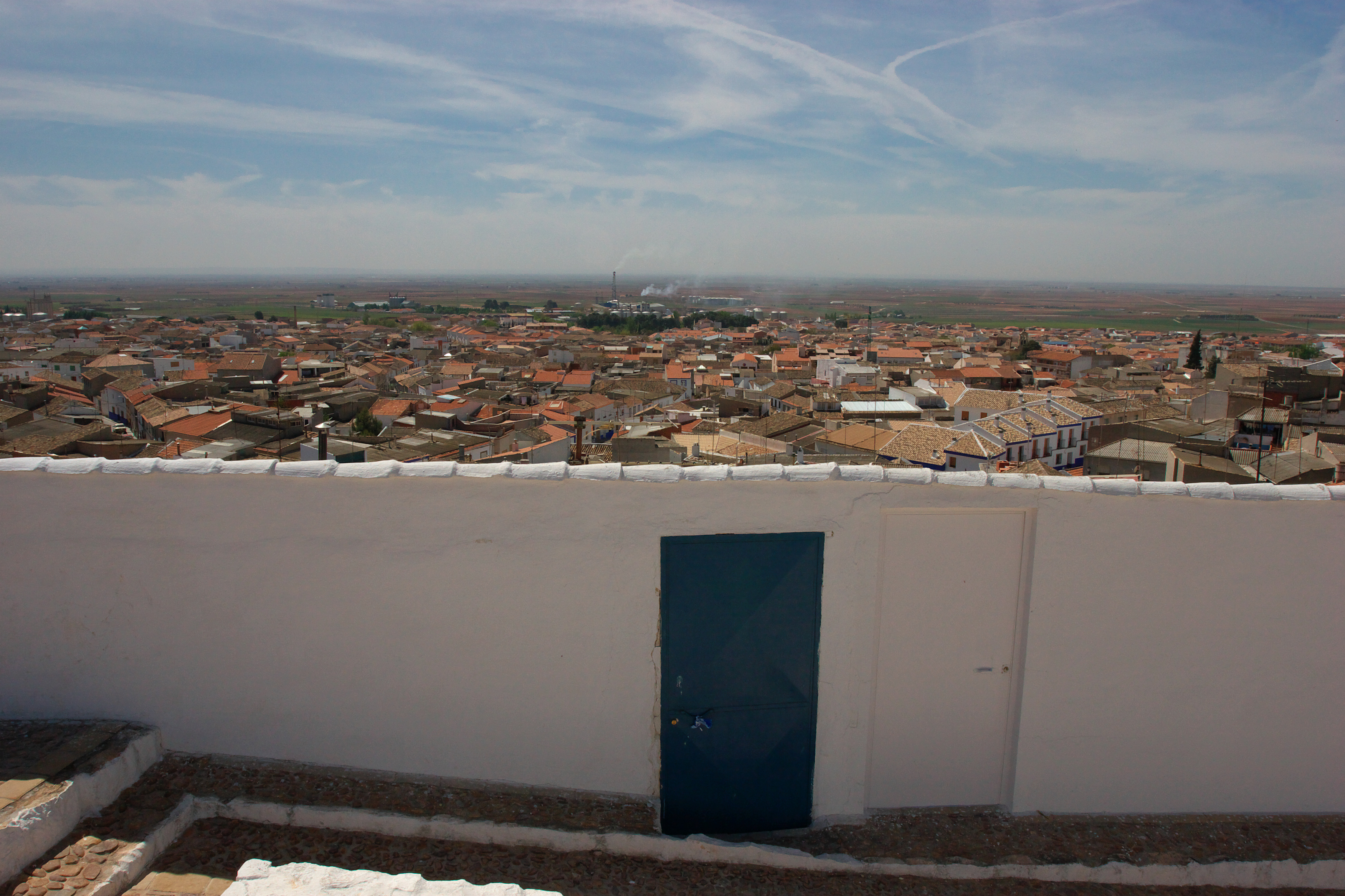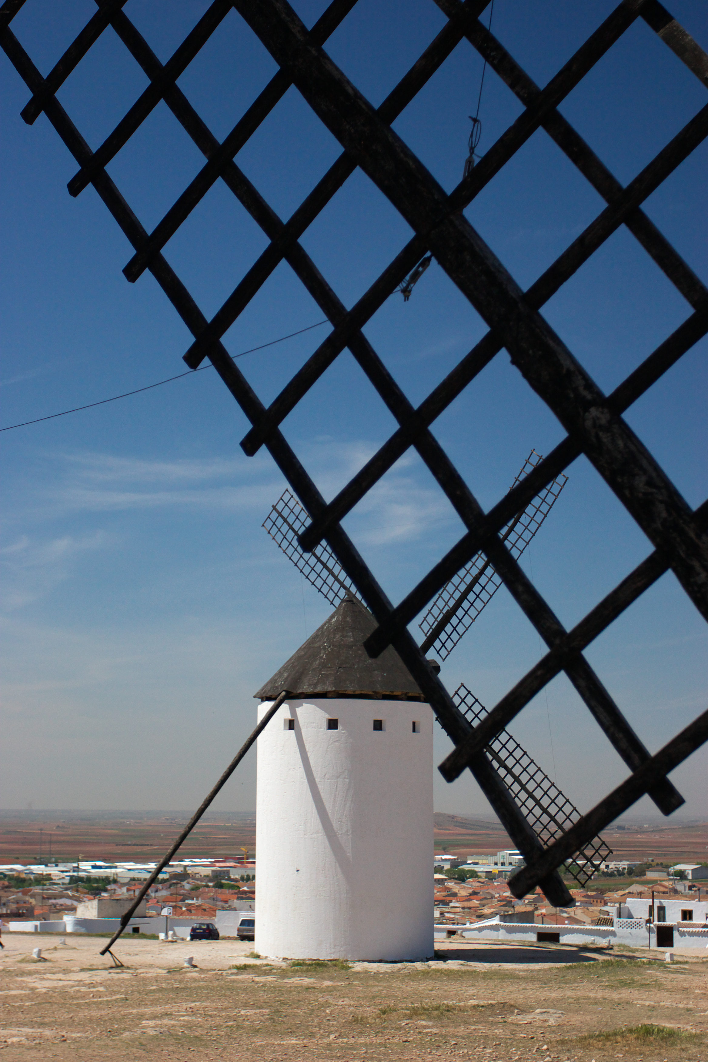 風車の頭が見えるコンスエグラの町です。