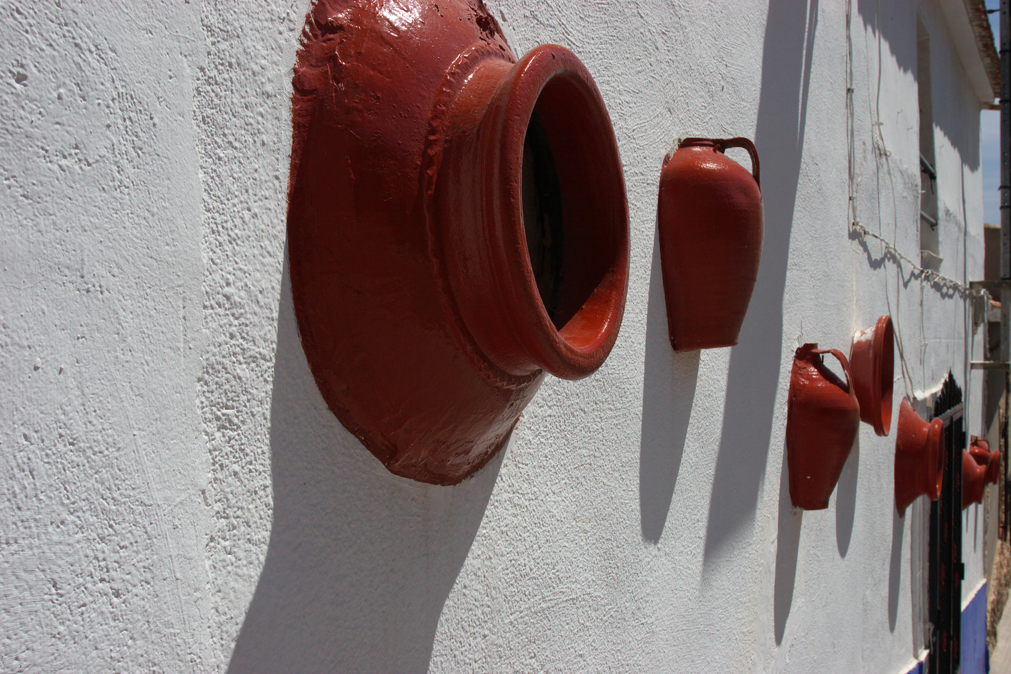 壺が埋まっている壁がありました。変わってますね。