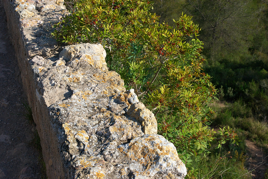 いろいろな形の石壁が組み合わさっている不思議な感じの壁。