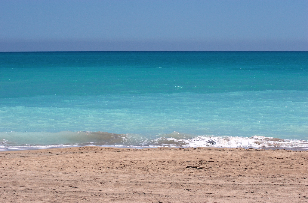 どこまでもまっすぐな海岸線が続いています。