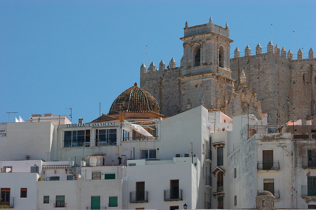 白い壁の町を見下ろすカテドラルの鐘。