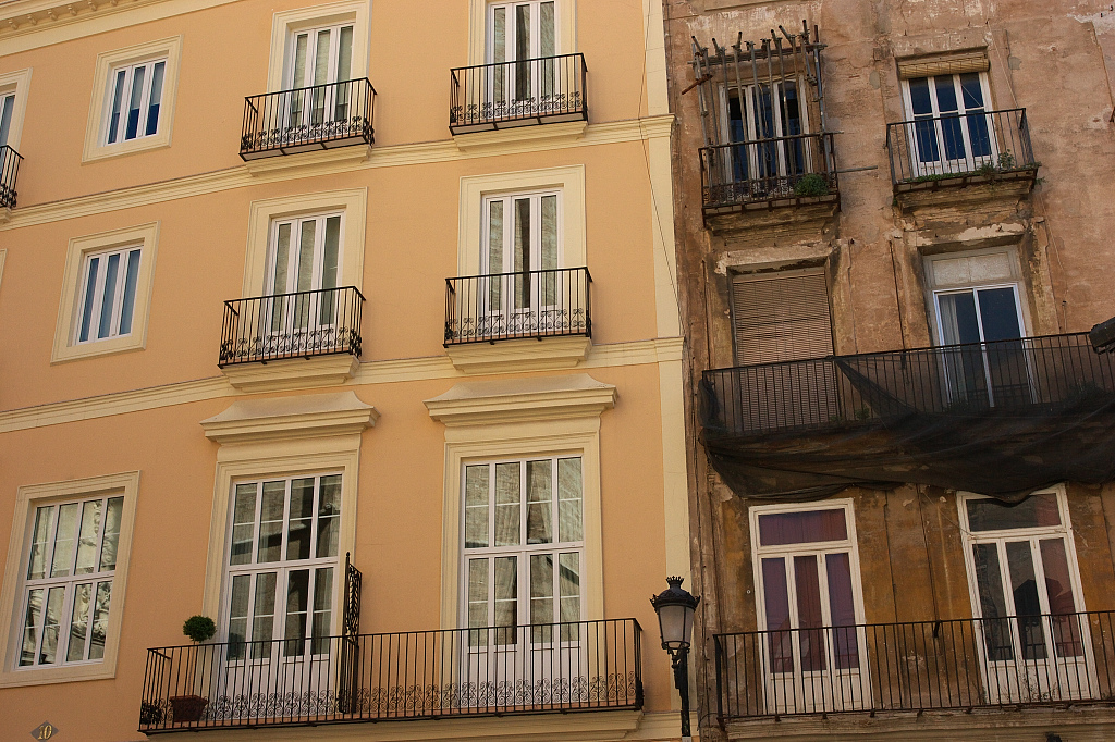 白い窓枠が綺麗に並んでいます。