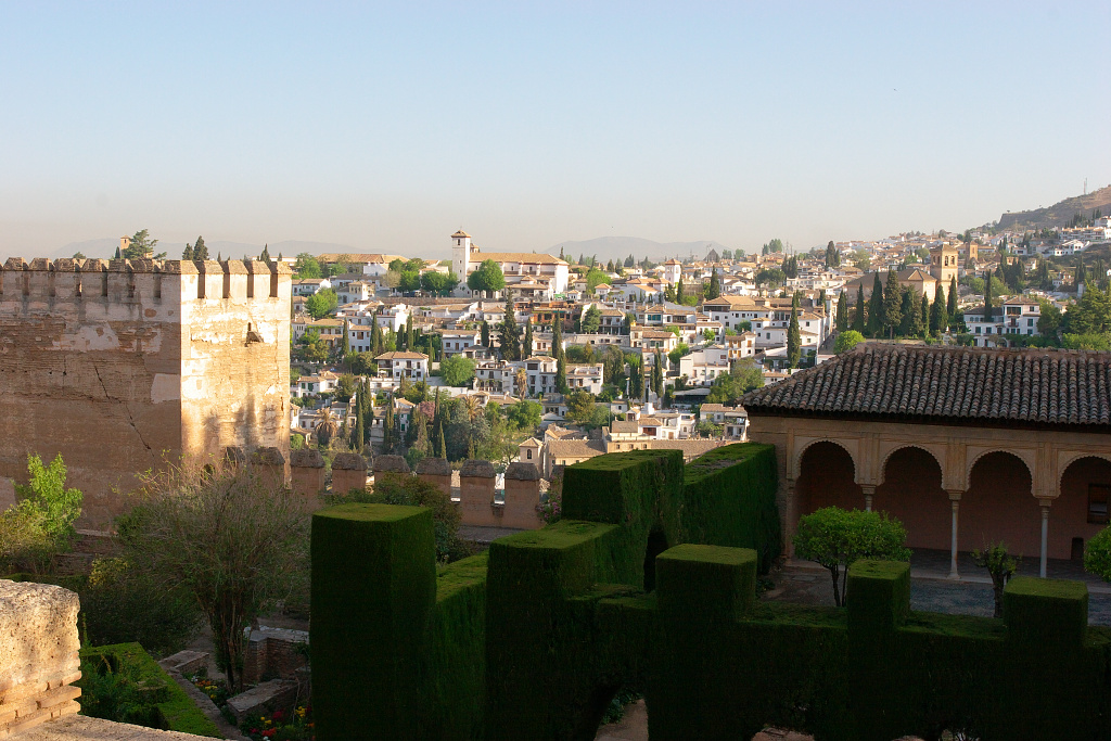 宮殿からグラナダ市街の丘を望む景色です。見えているのはアルバイシン地区方面です。