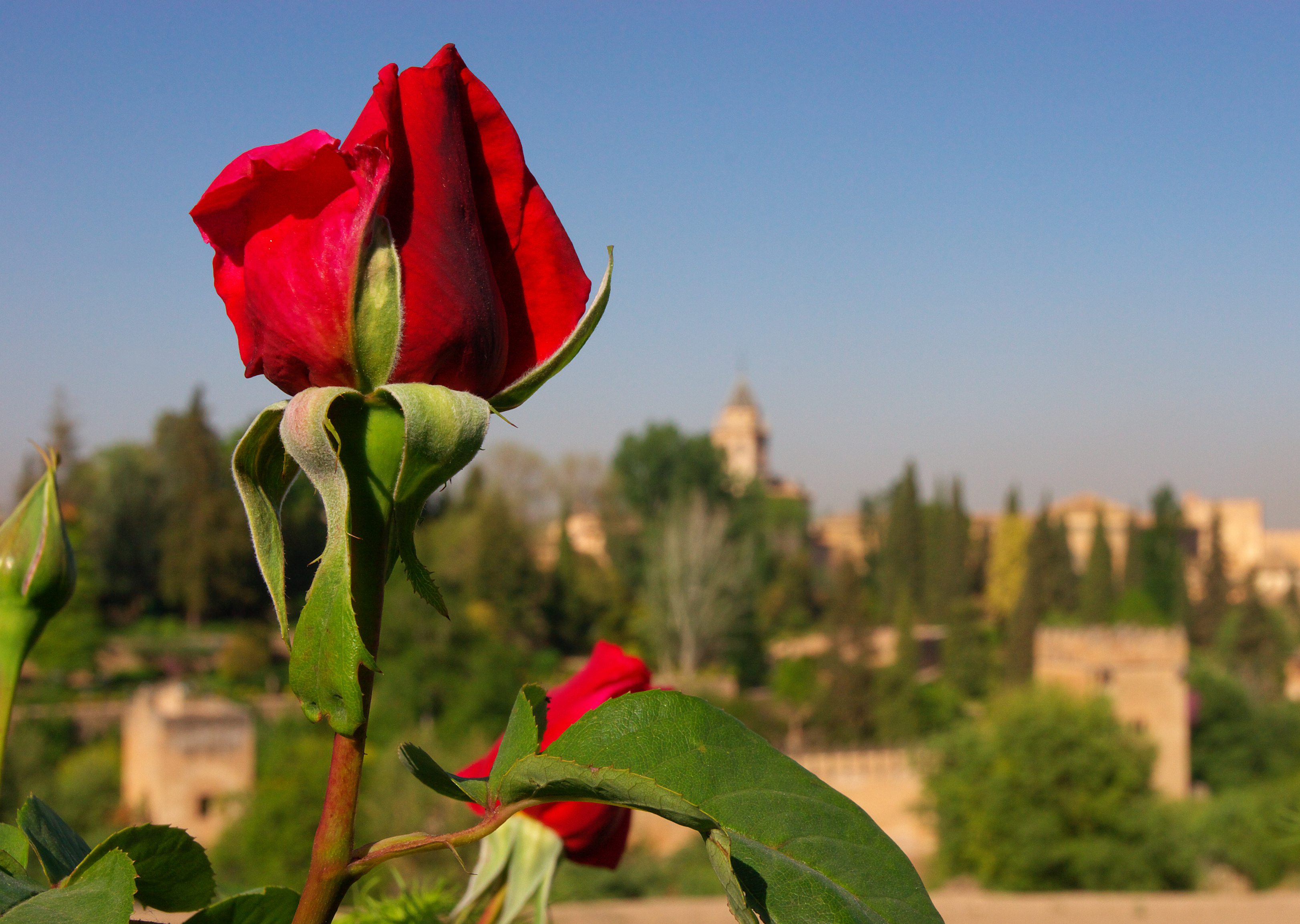 真っ赤な薔薇です。情熱の国の象徴ですね。