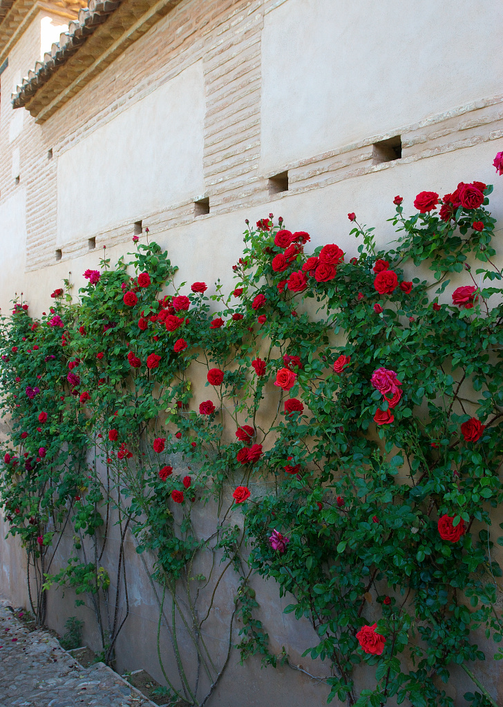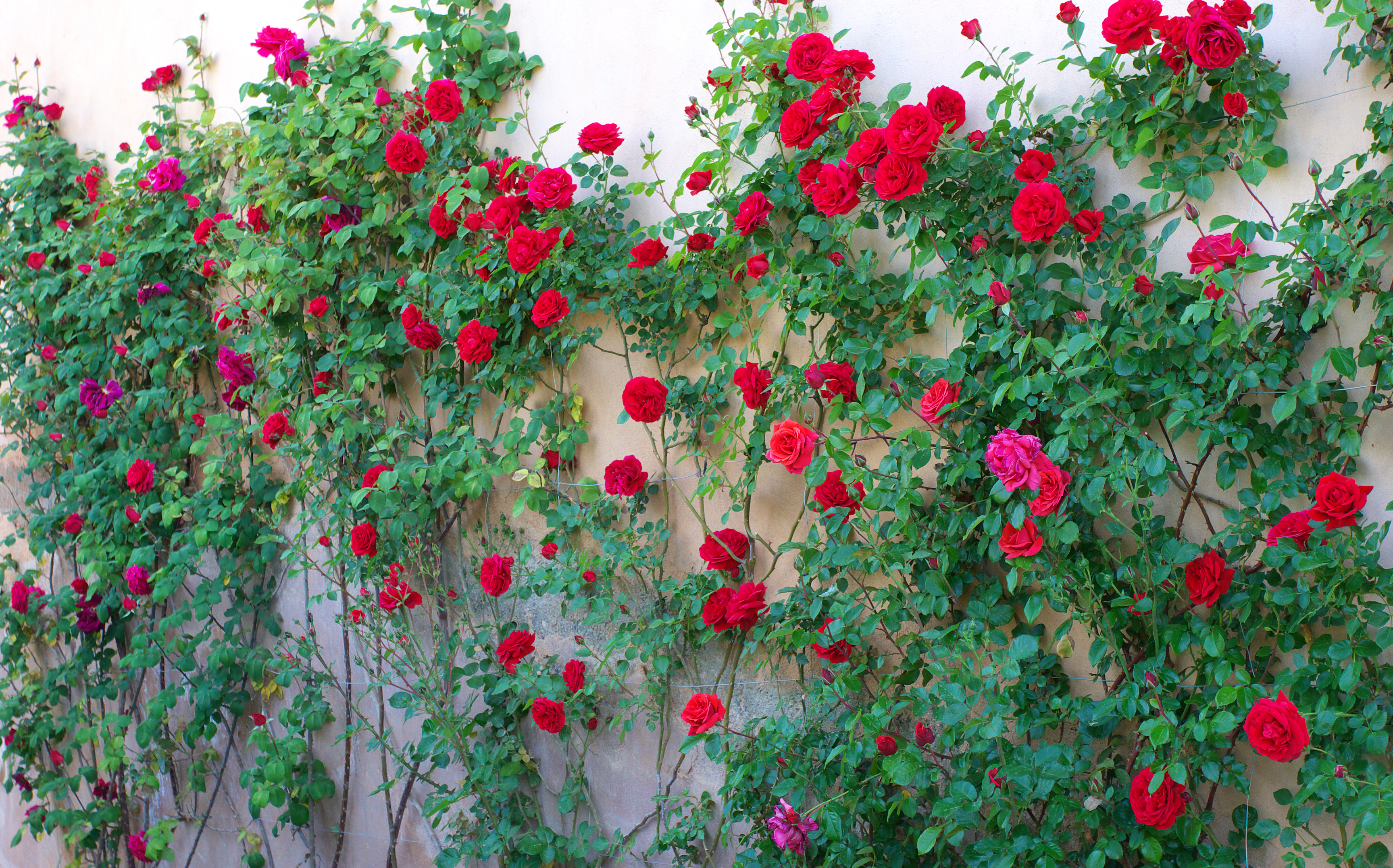 壁一面のバラ、バラ、バラ。女性なら誰もが憧れてしまうような庭です。