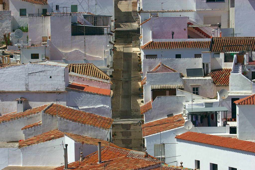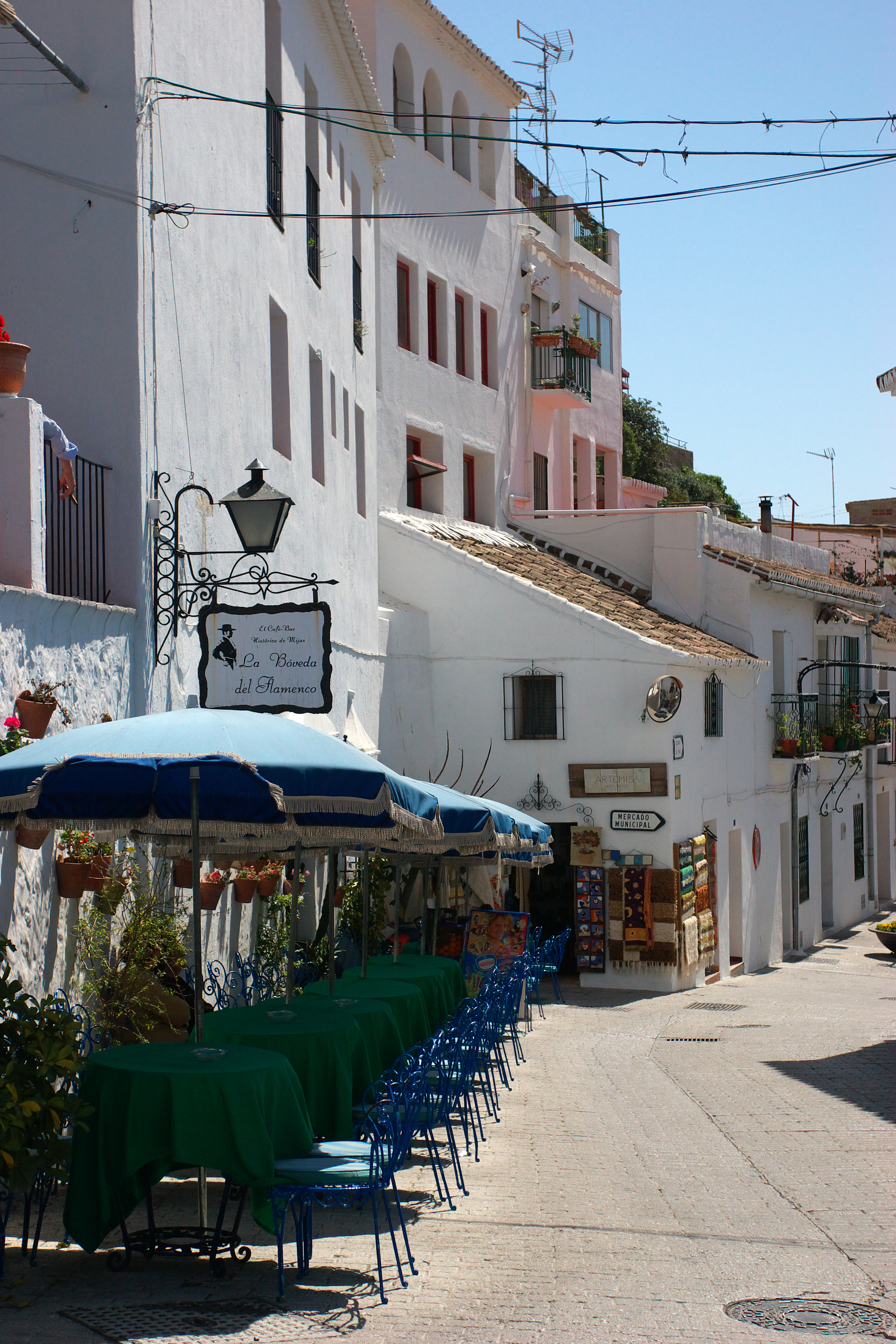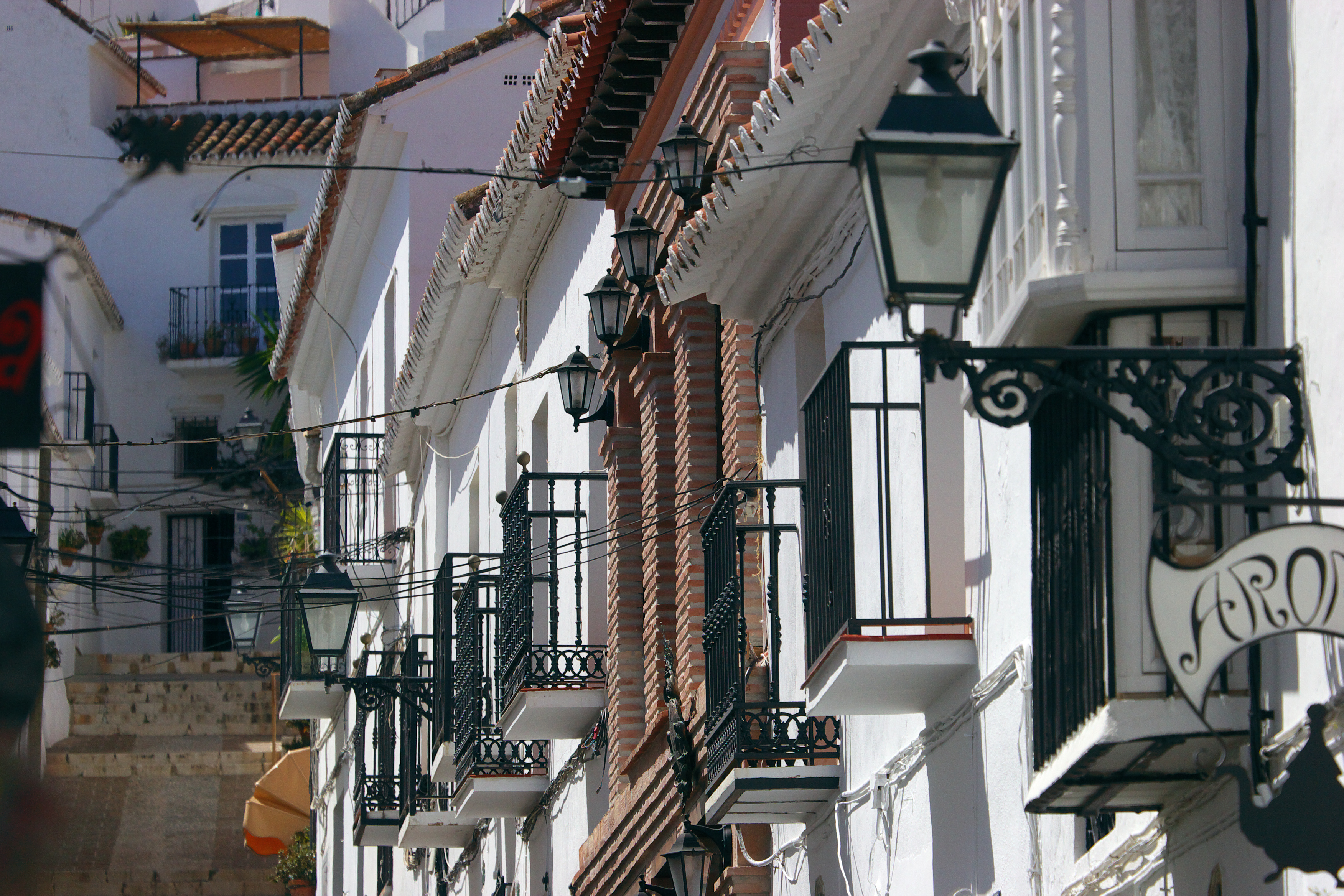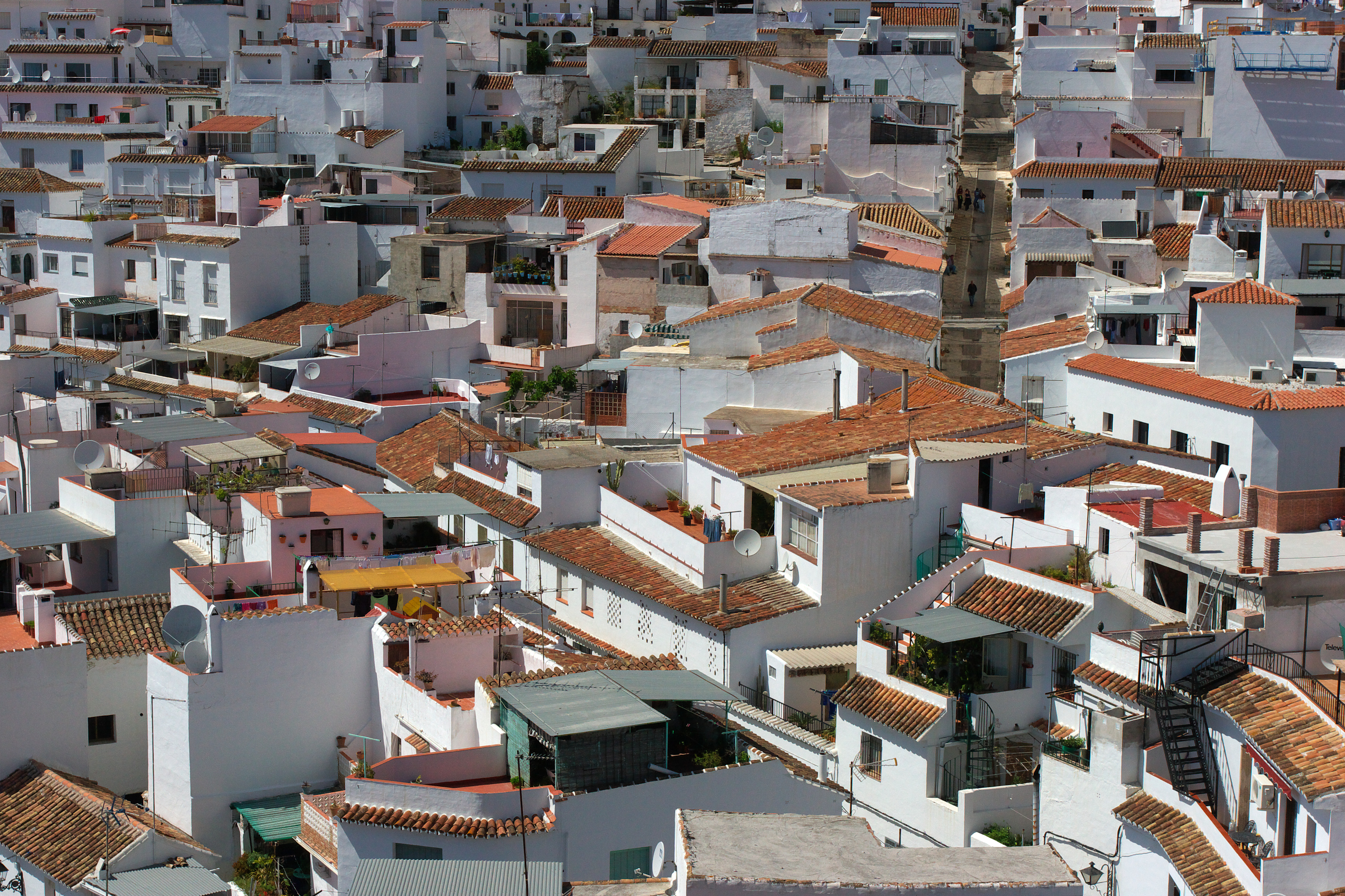白い壁の家々が並ぶ街。スペインならではの風景です。