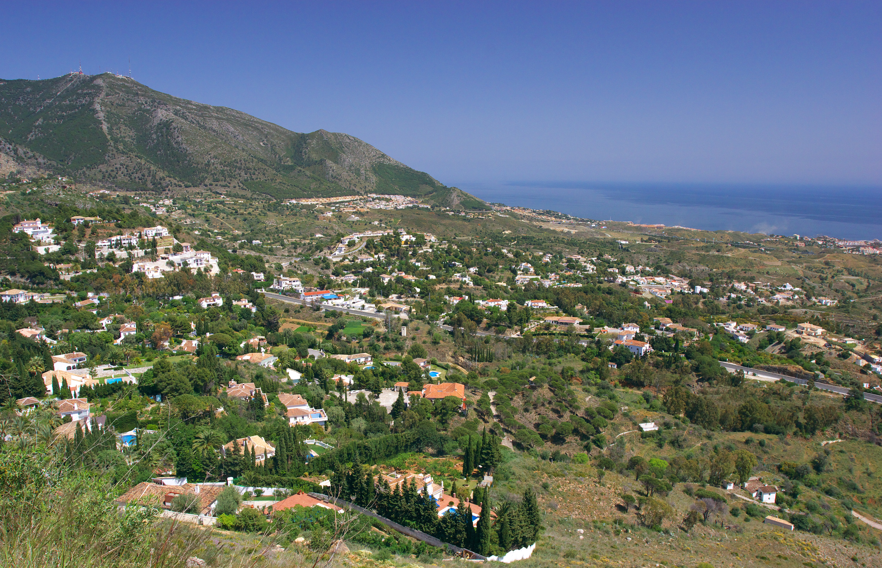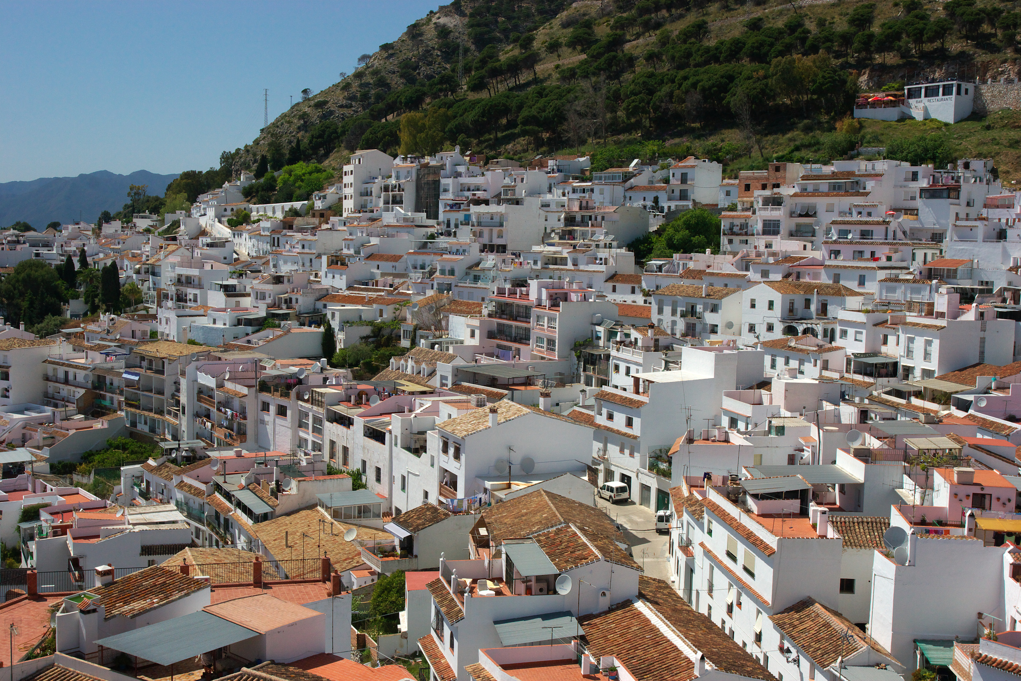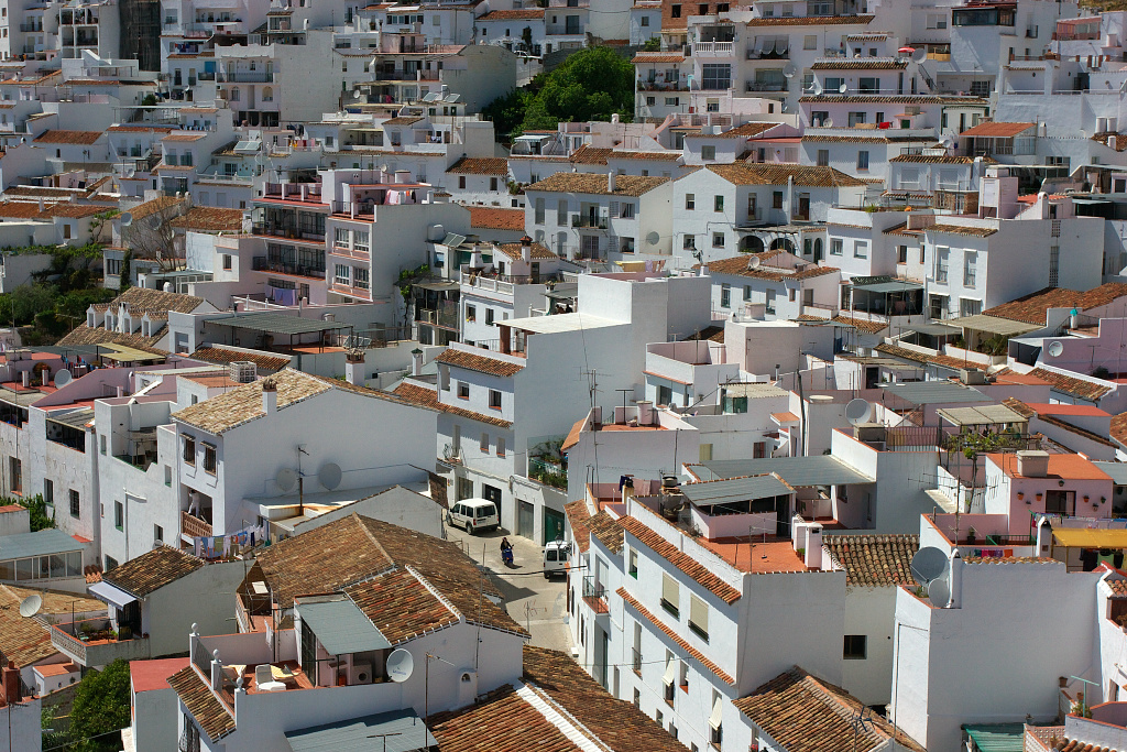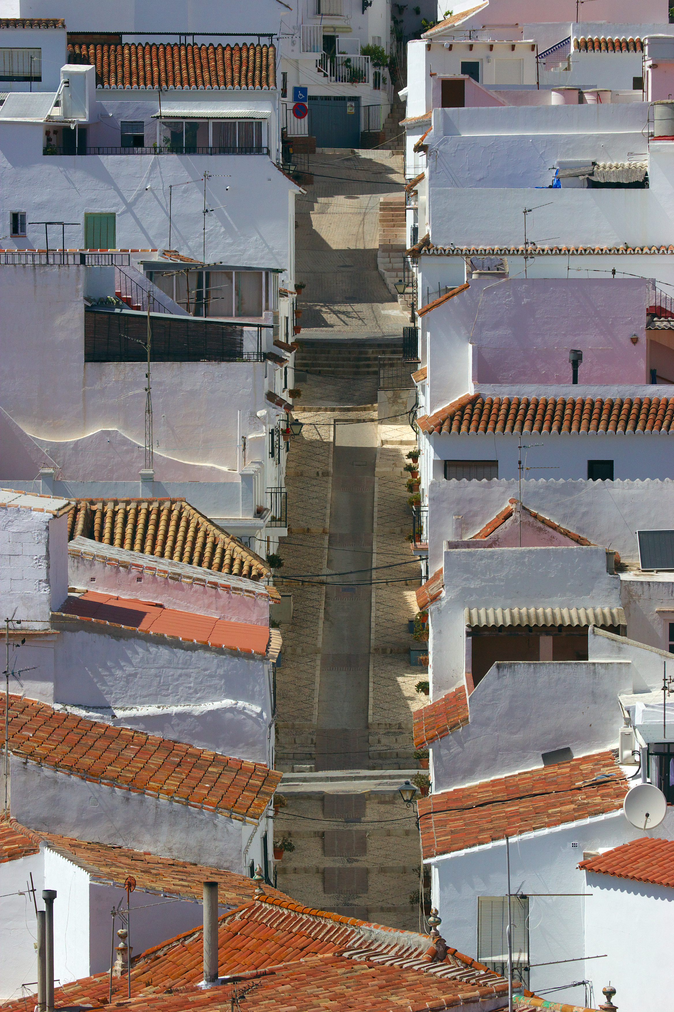 白い壁の家々が並ぶ街。スペインならではの風景です。