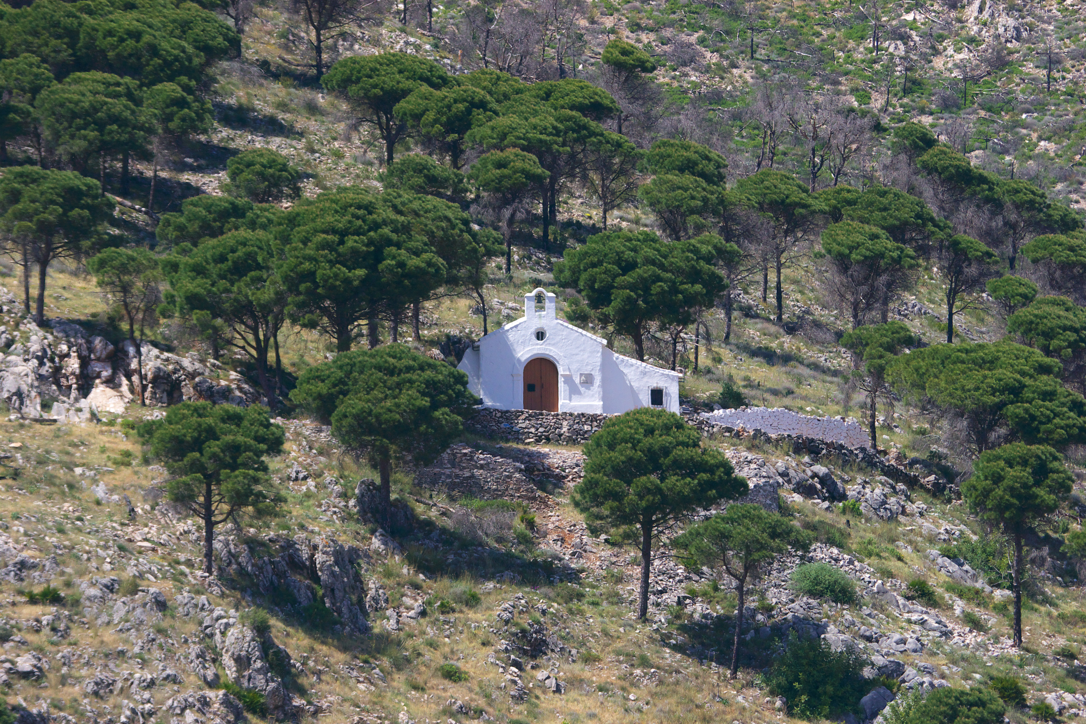 急な斜面に教会がぽつんと建っています。礼拝に行くのは大変そうですね。