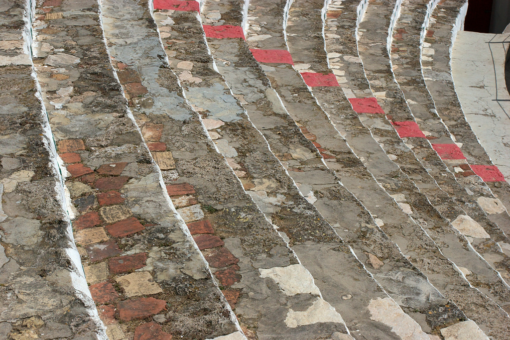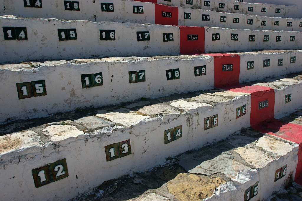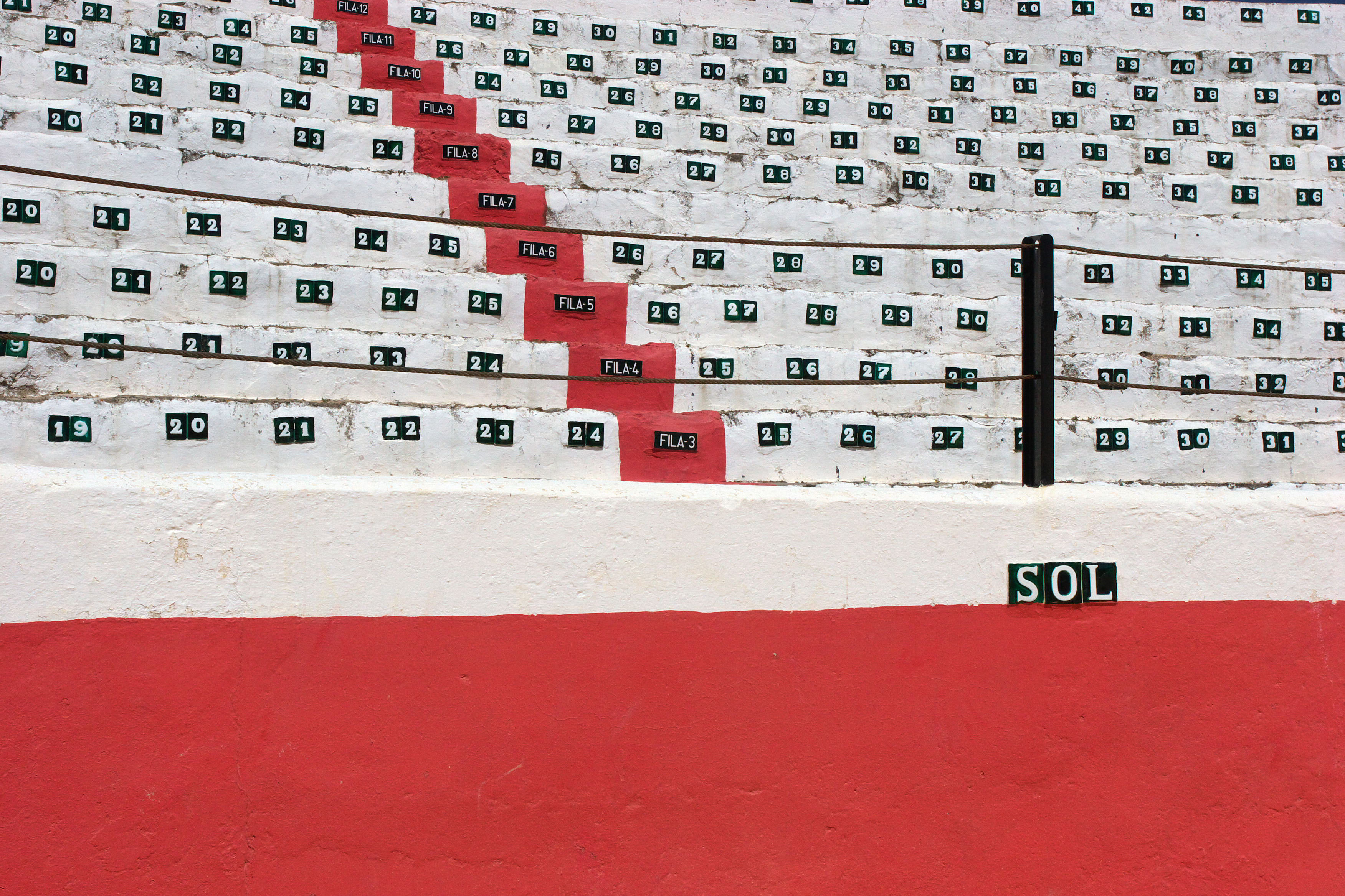 闘牛場の席です。上の方から撮影すると、階段のように見えます。
