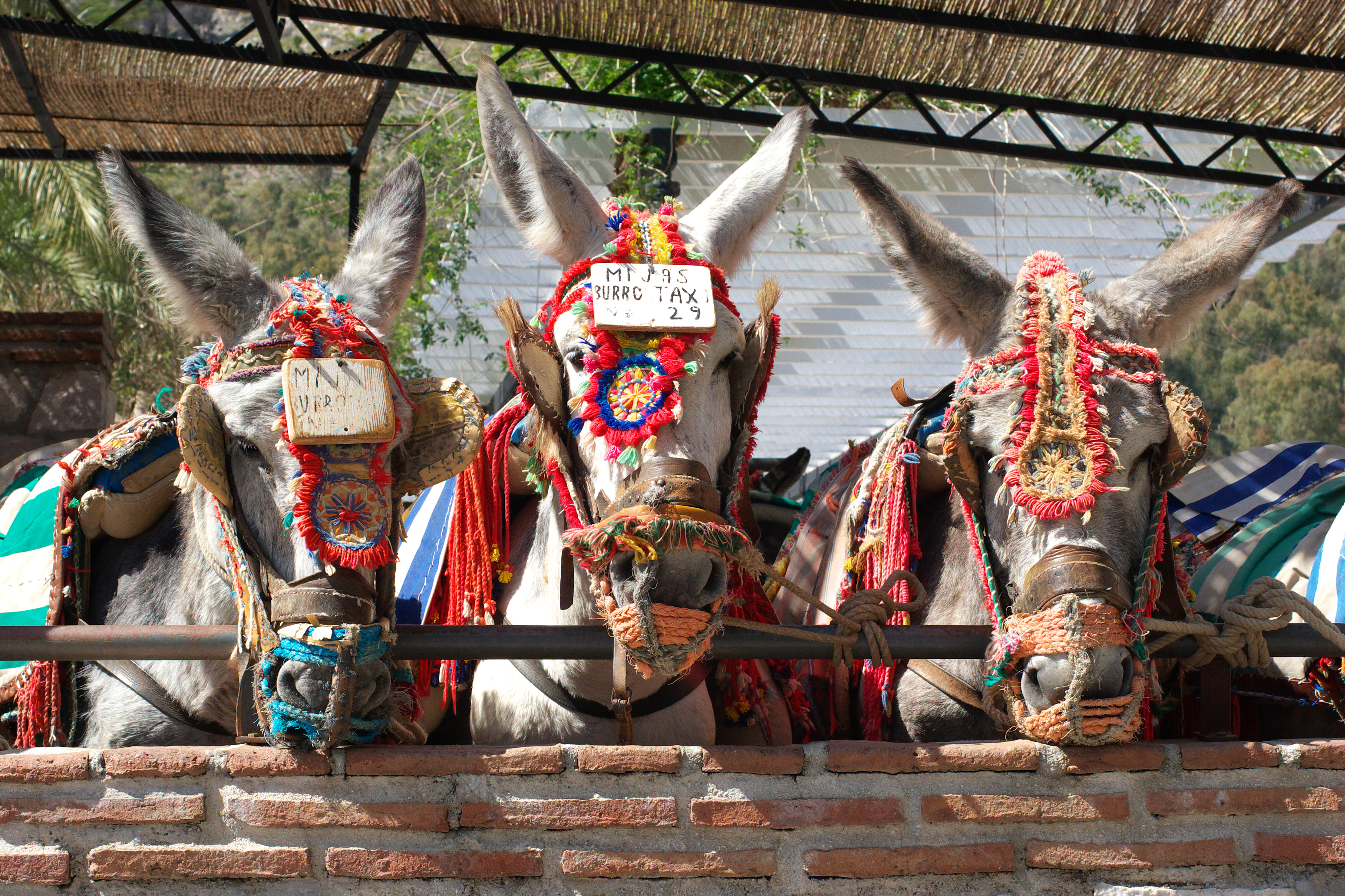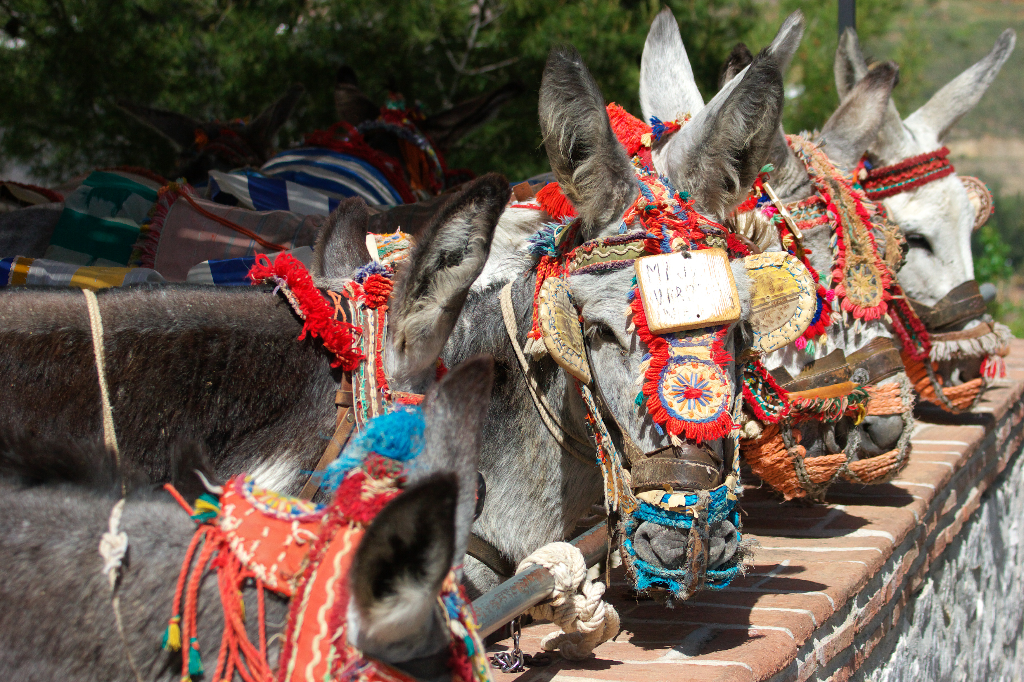ミハスの町で馬車を引くロバたちです。でも、全員休憩中。