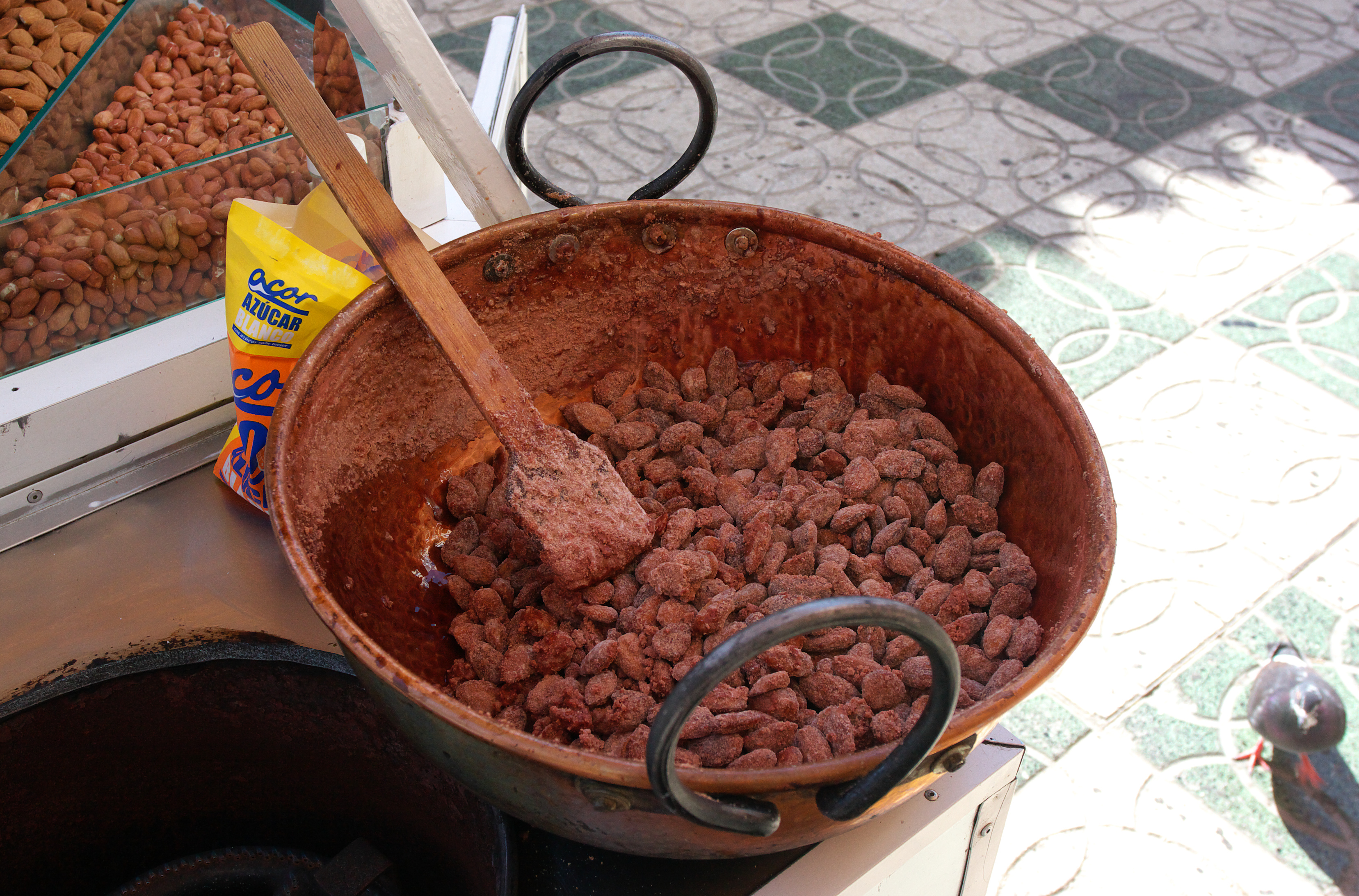 アーモンドの砂糖和え(お菓子)を、鳩が密かにねらっています。