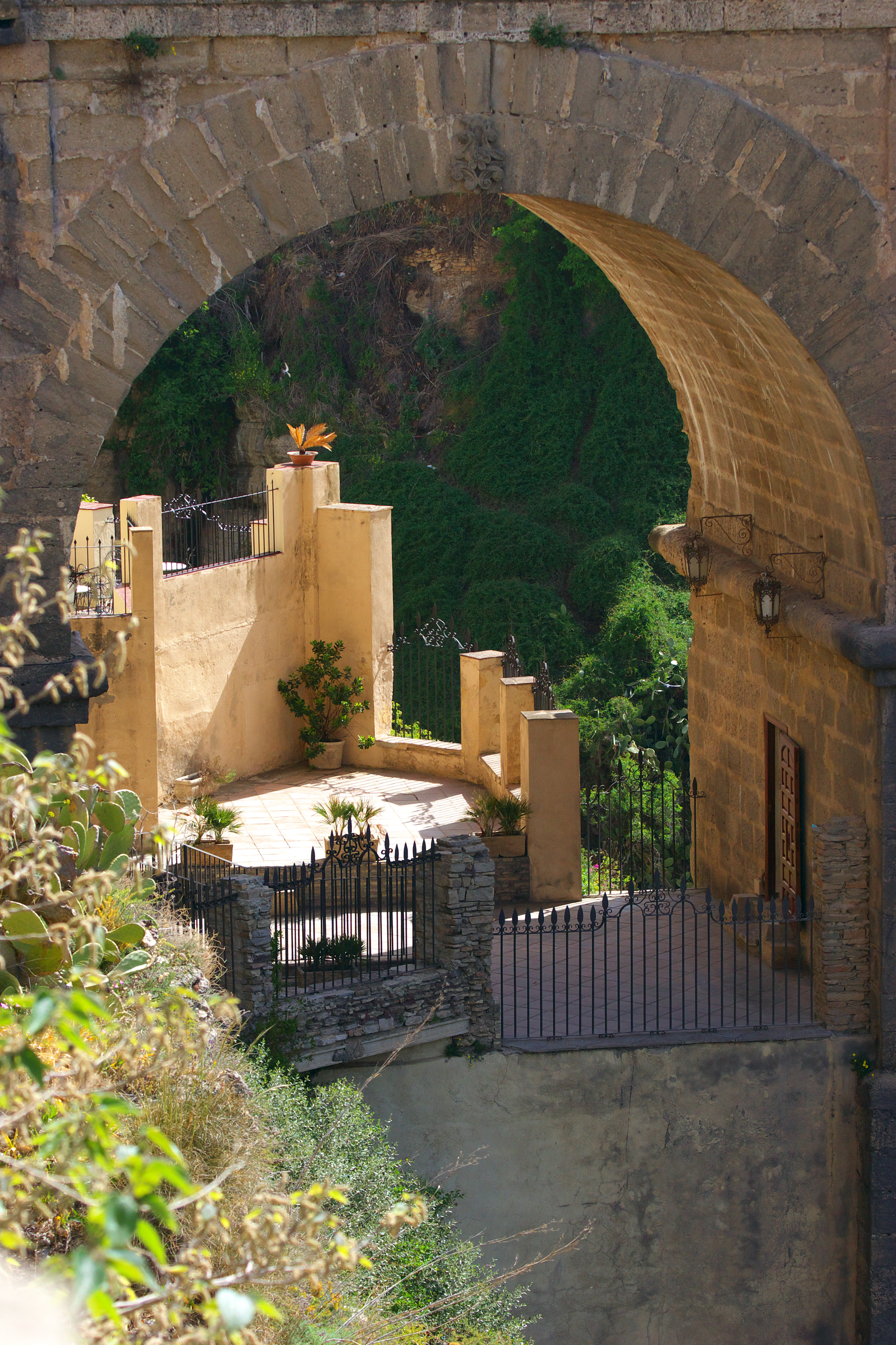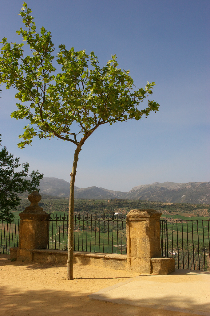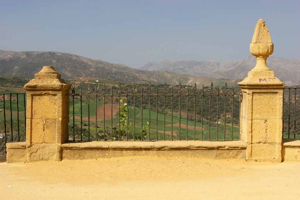 ふと闘牛場の横を見てみたら、青い空と丘が見えました。