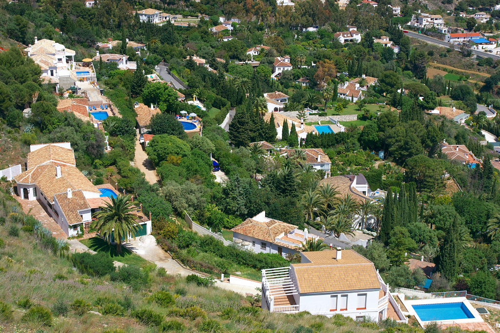 地中海を望む丘の斜面です。高級住宅が建ち並んでいます。
