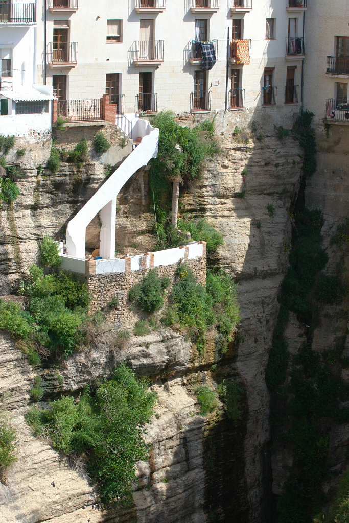 崖ギリギリまで家が建っています。さらに崖に降りる階段までついています。