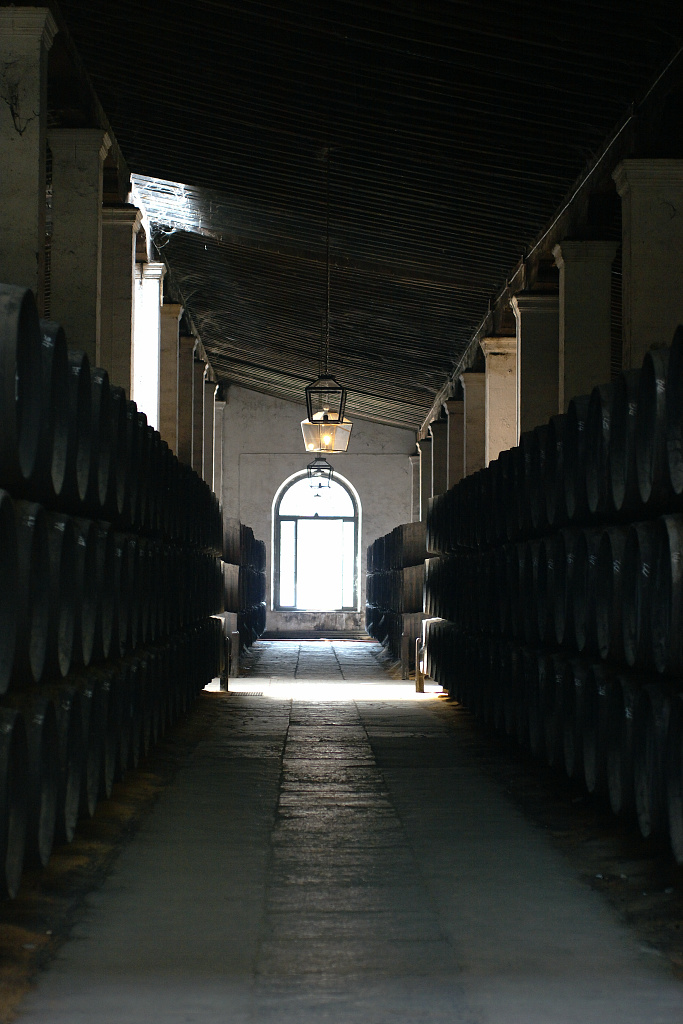 シェリー酒では有名なティオペペを作っているの工場内の風景です。突き当たりに有名なマークが飾られています。