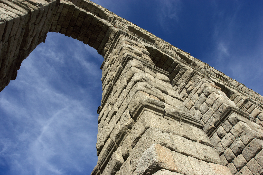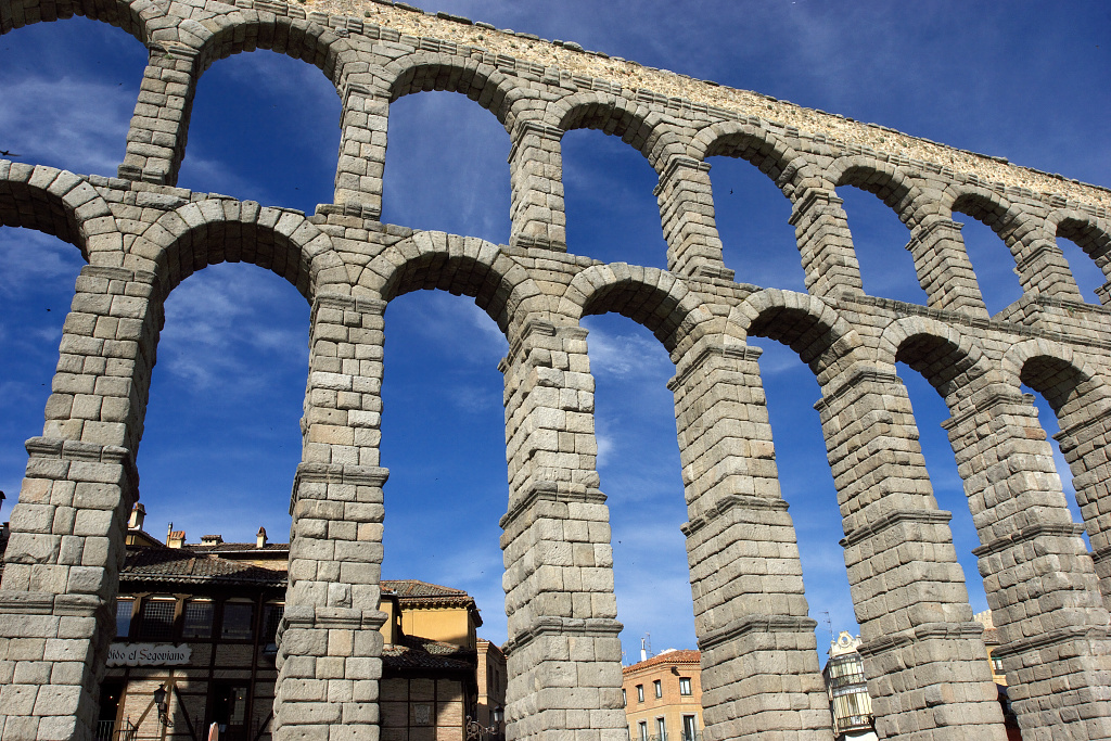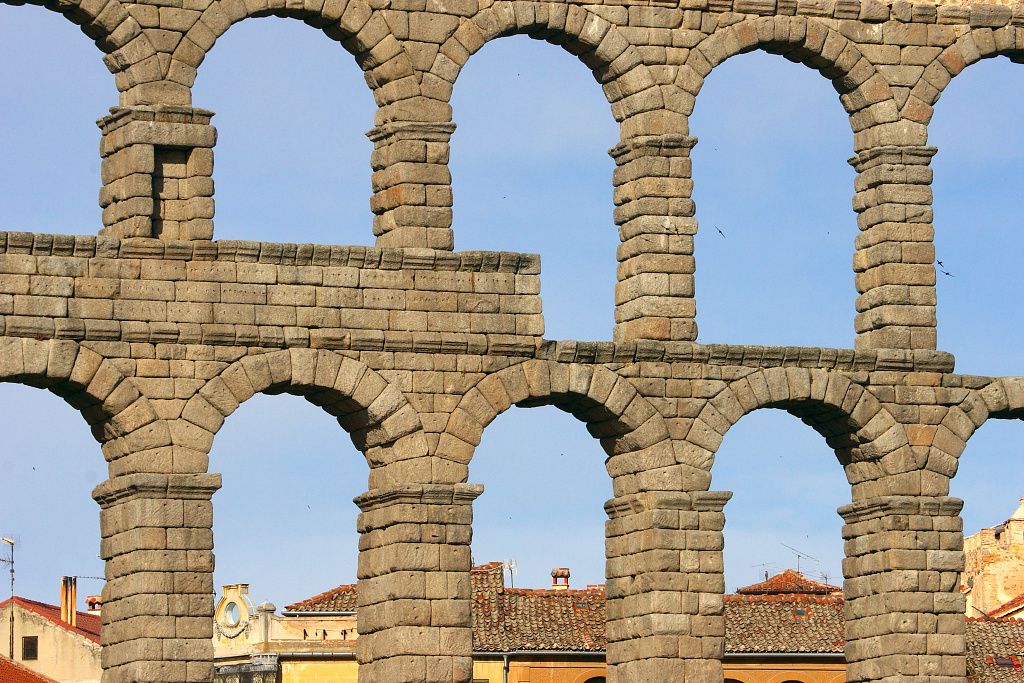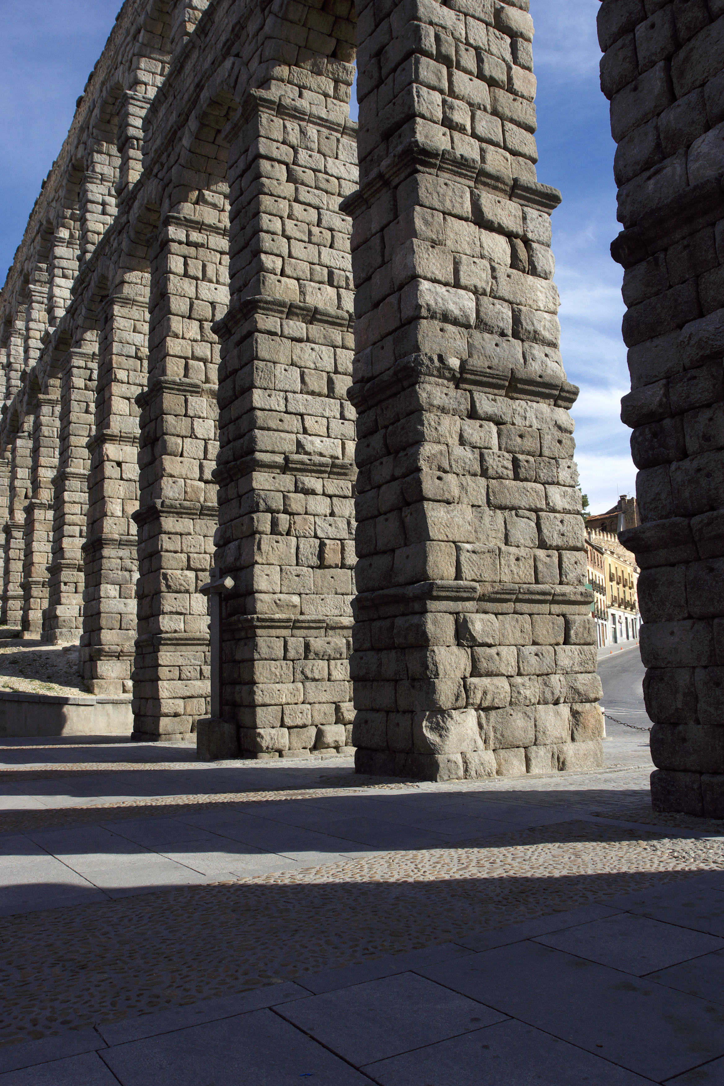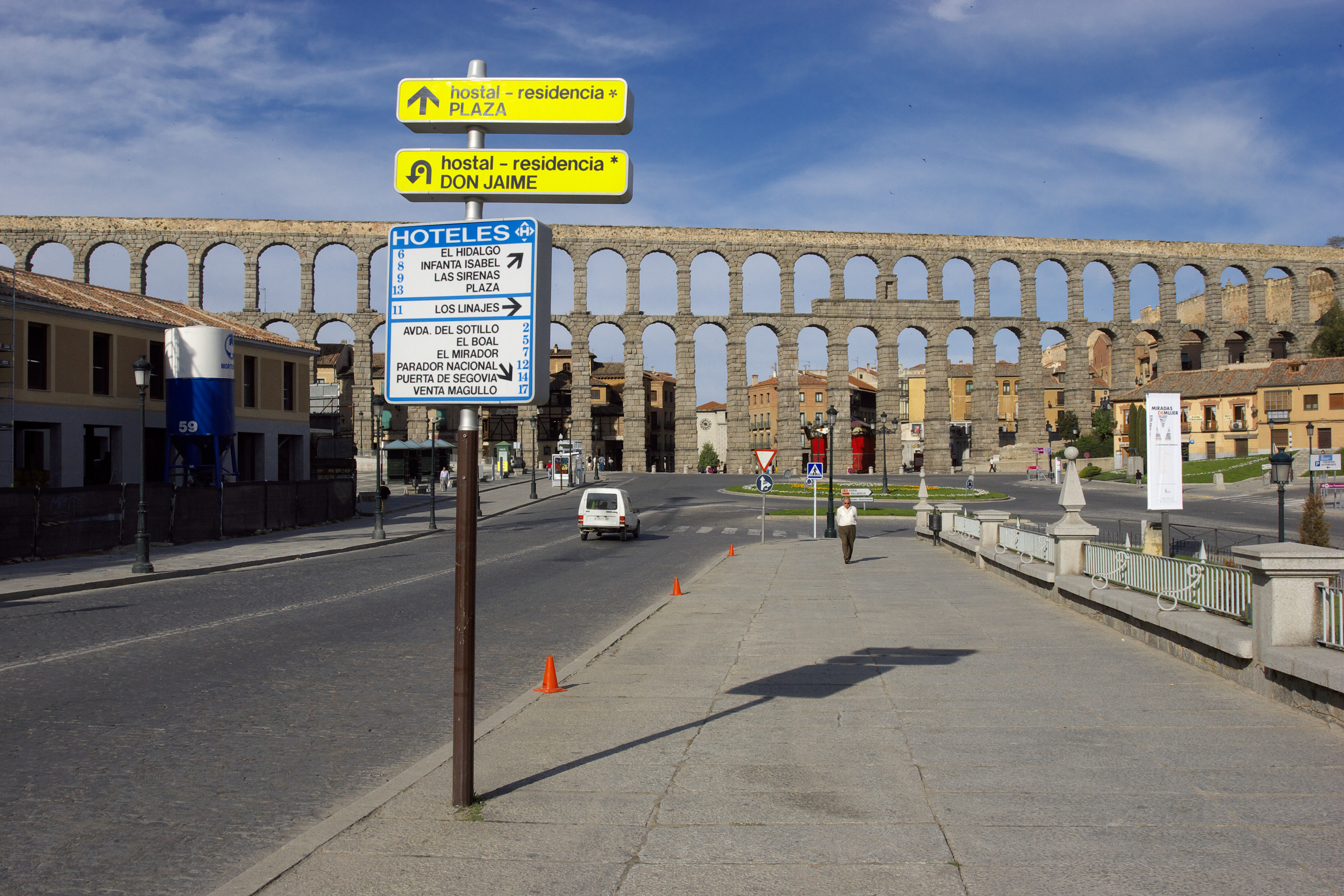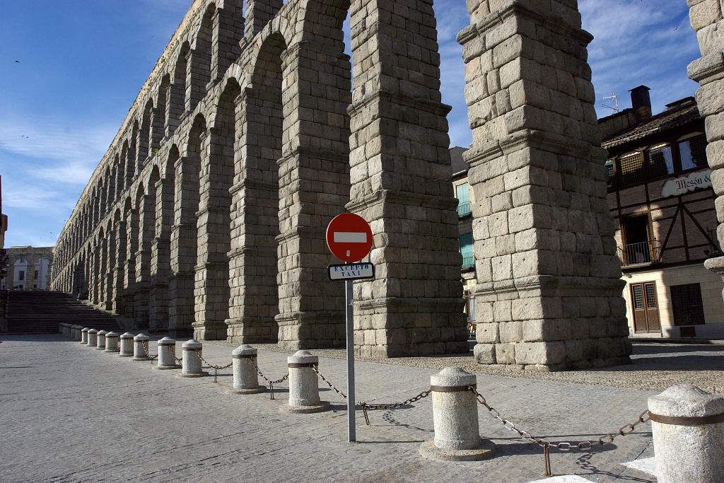 ずっと町の奥の方まで続いている水道橋と標識です。標識だけが現代であることを示しています。