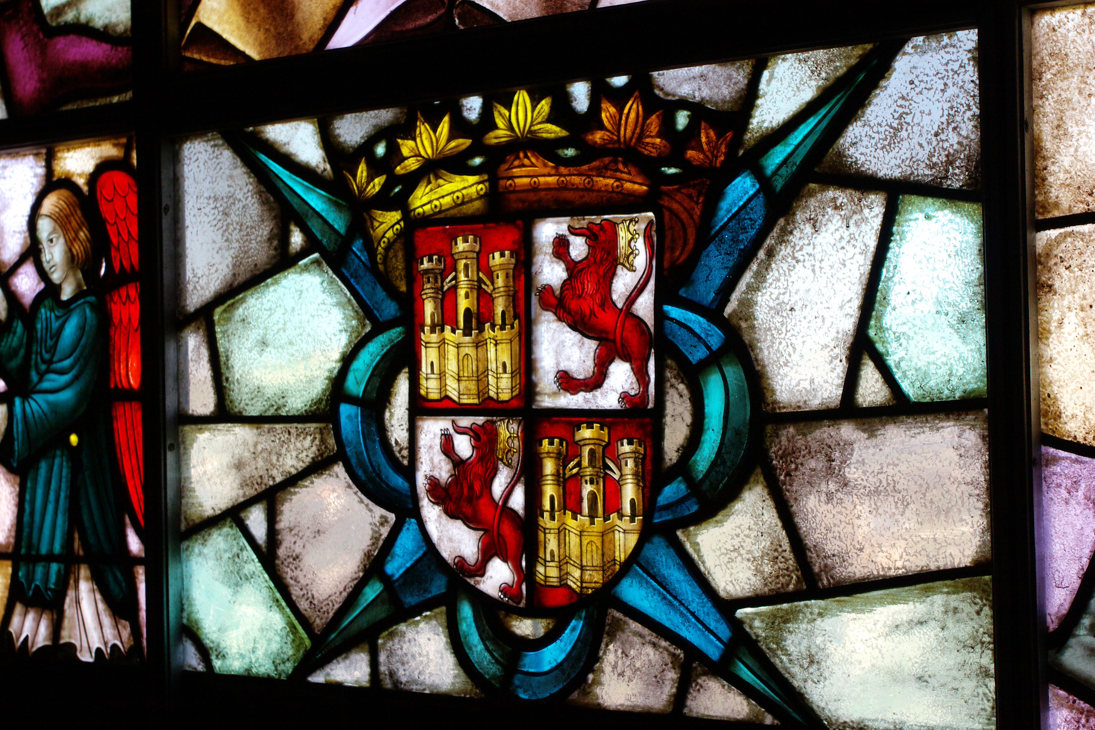 ライオンの紋章が入った綺麗なステンドグラスです。