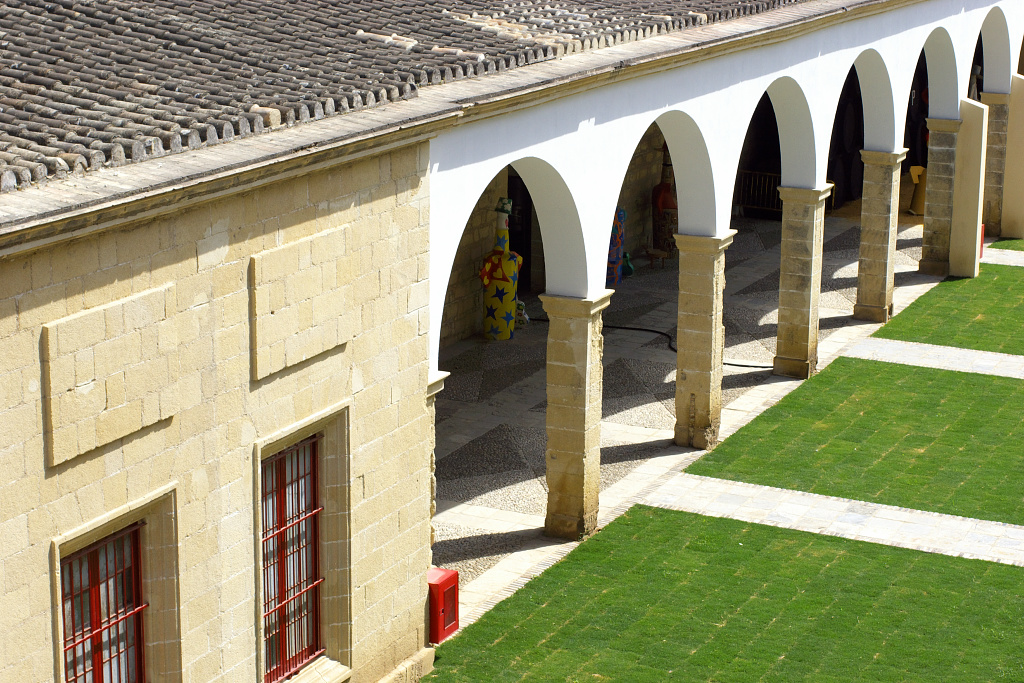 芝生が綺麗なシェリー酒工場のカフェテラス。