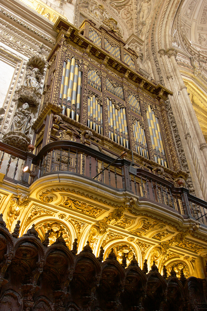 教会にあるパイプオルガンです。ライトアップ効果で黄金色に輝いています。