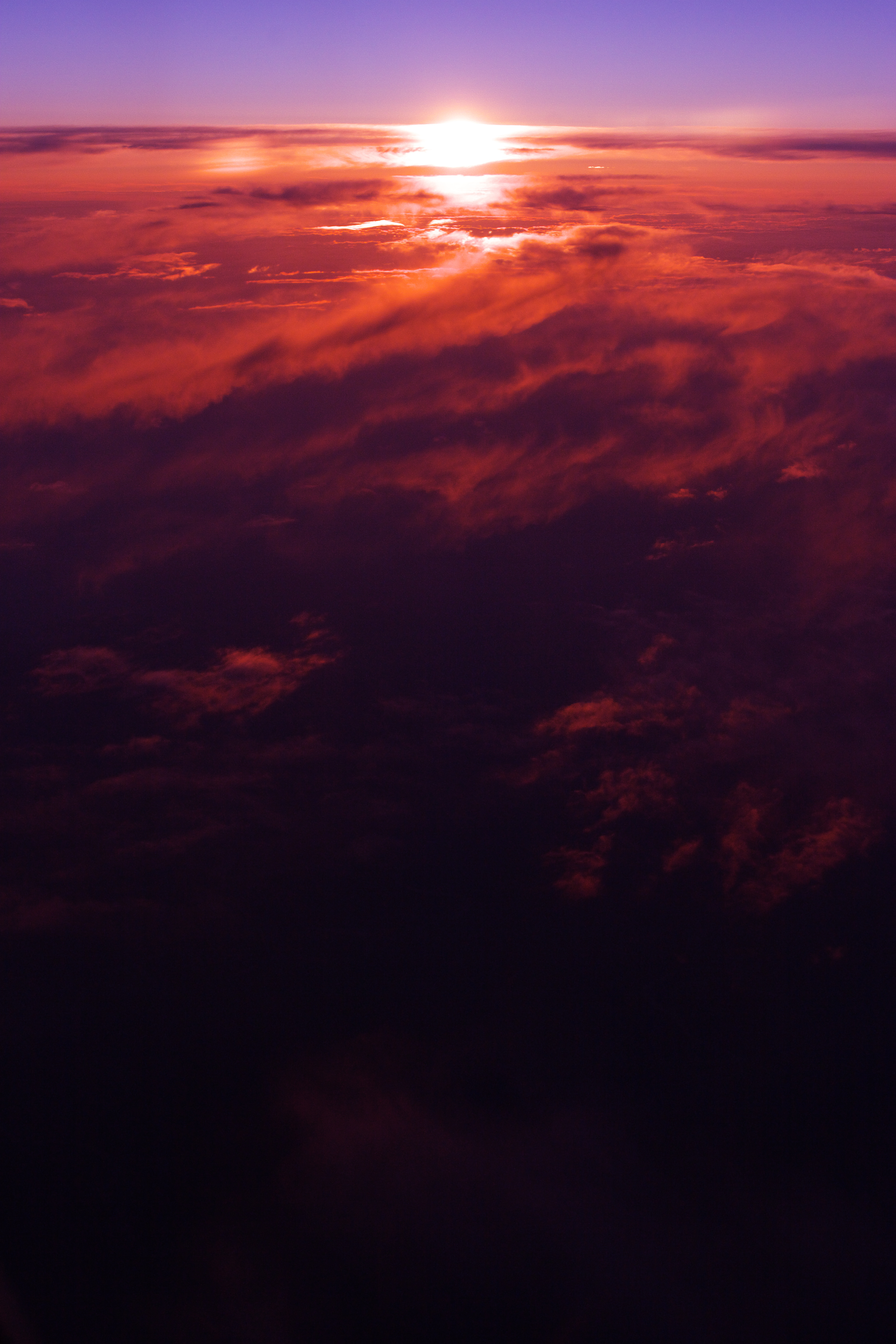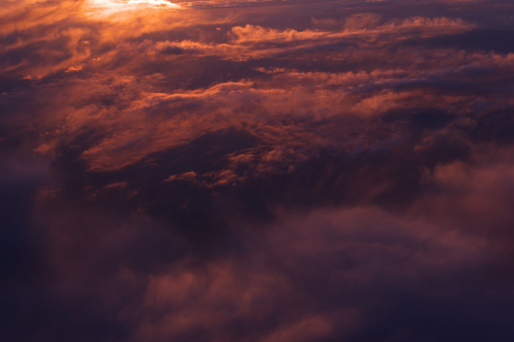 夕焼けにうごめく眼下の雲の様子にシャッターを切りました。