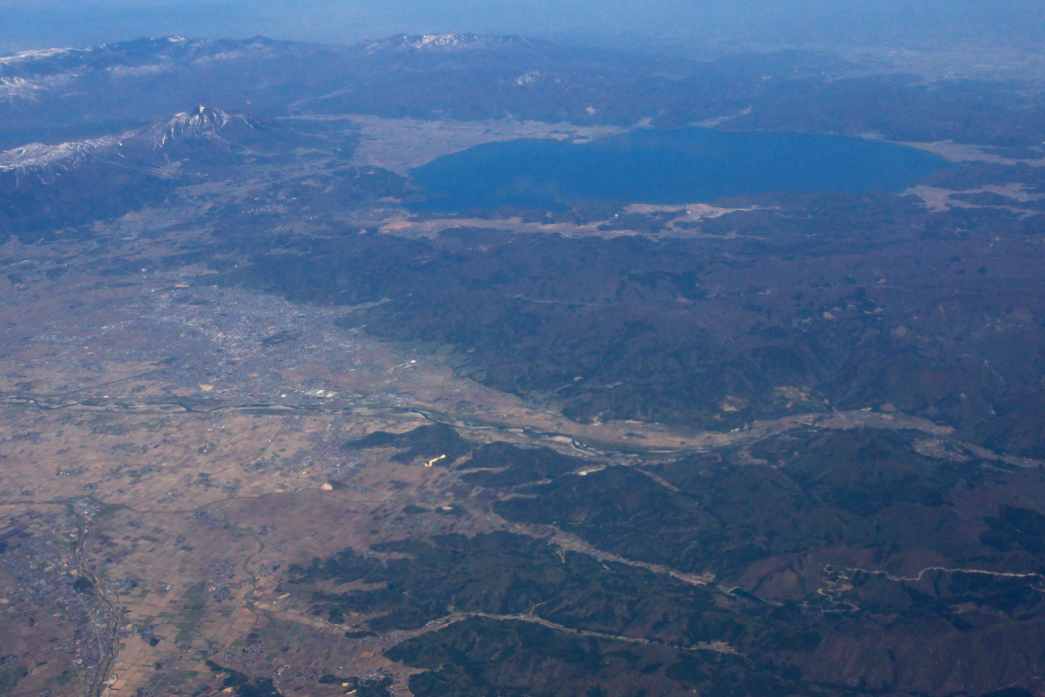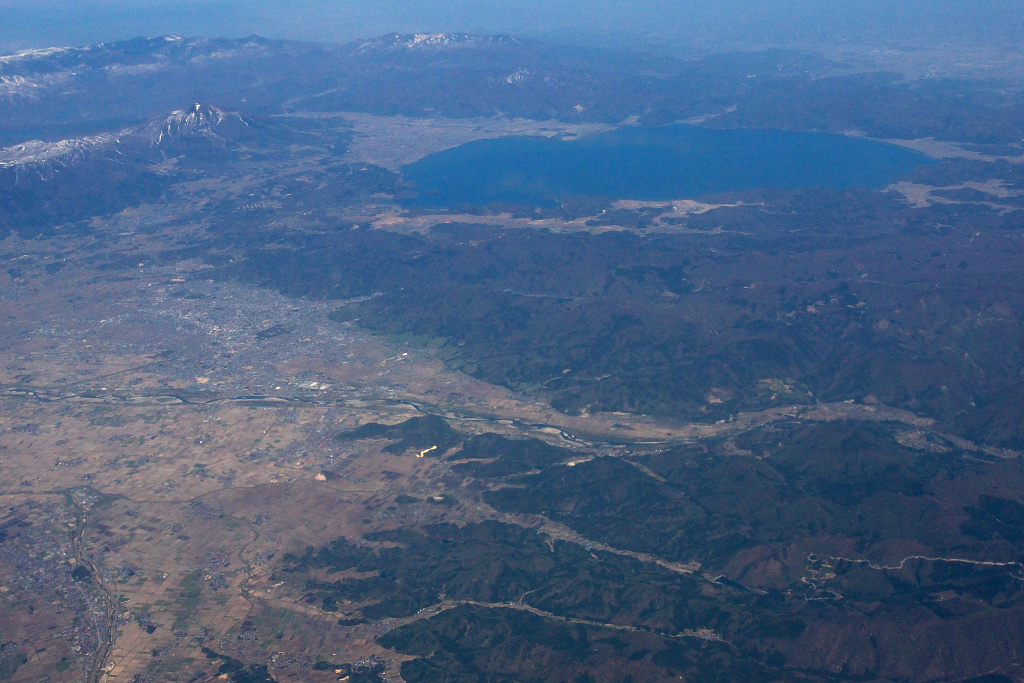 猪苗代湖でしょうか。成田に向かって徐々に高度を下げていきます。