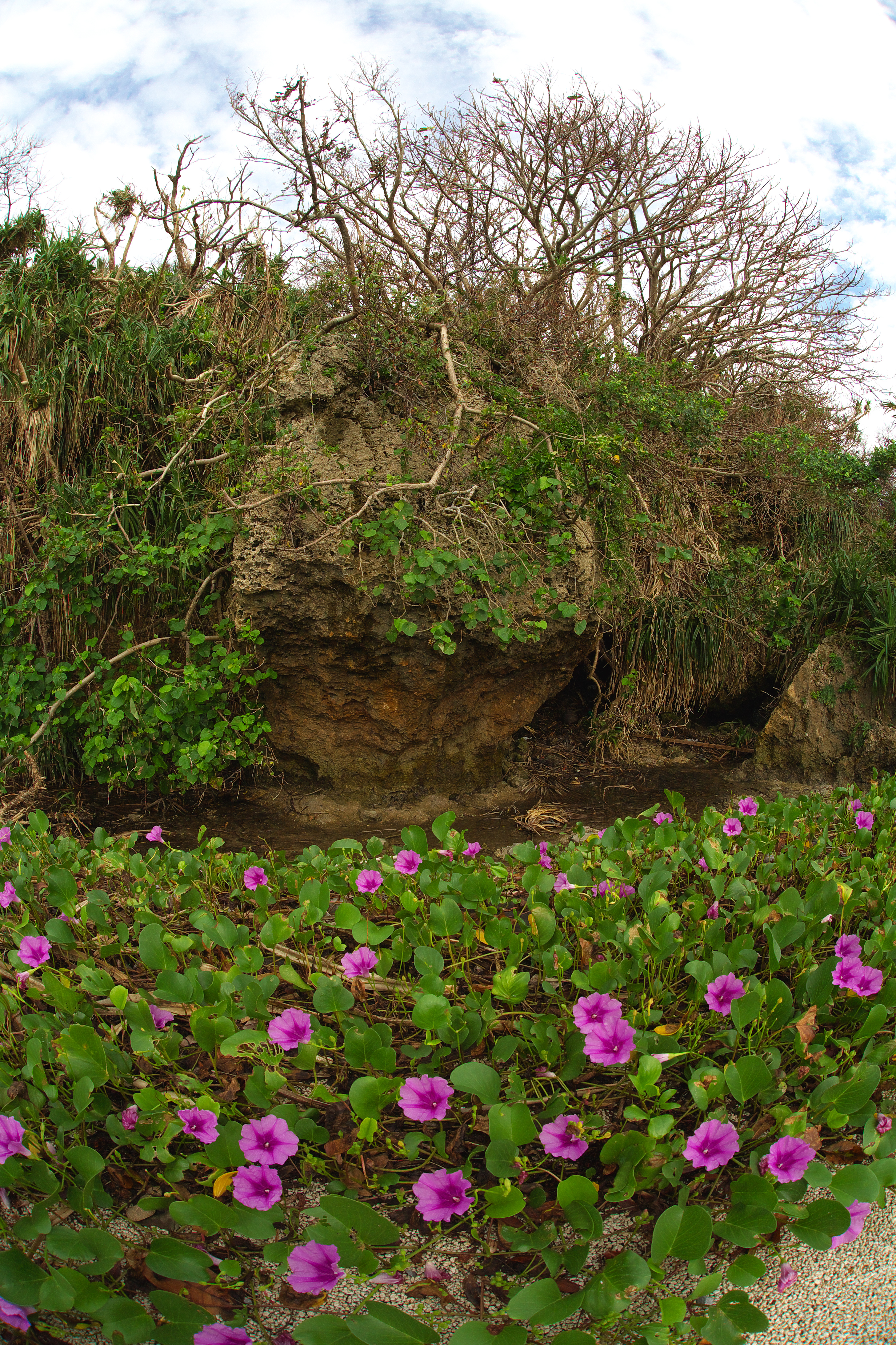 崖の下に咲いています。魚眼レンズで誇張した表現にしてみました。
