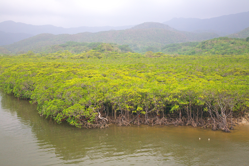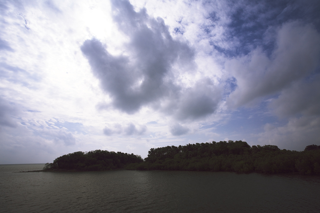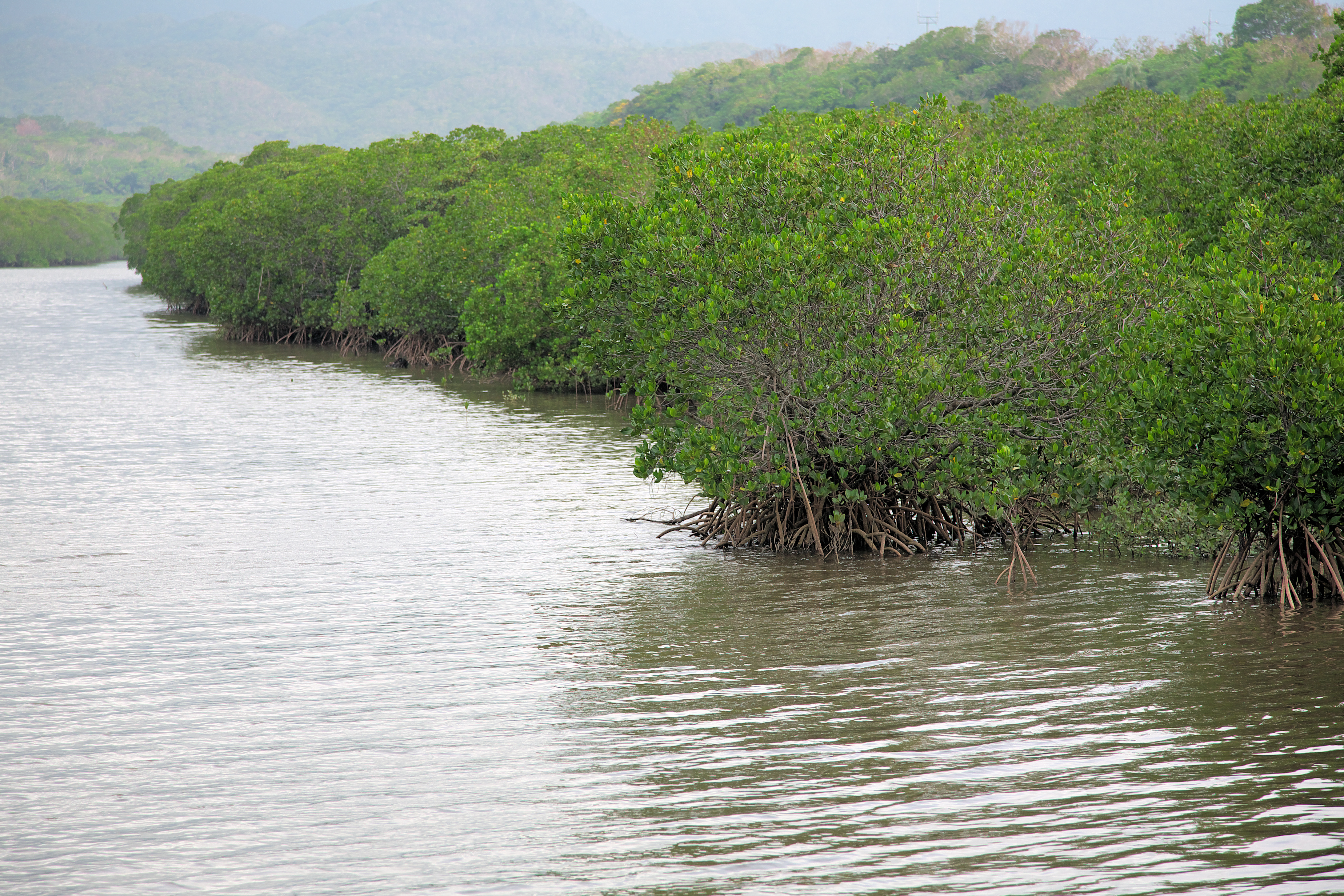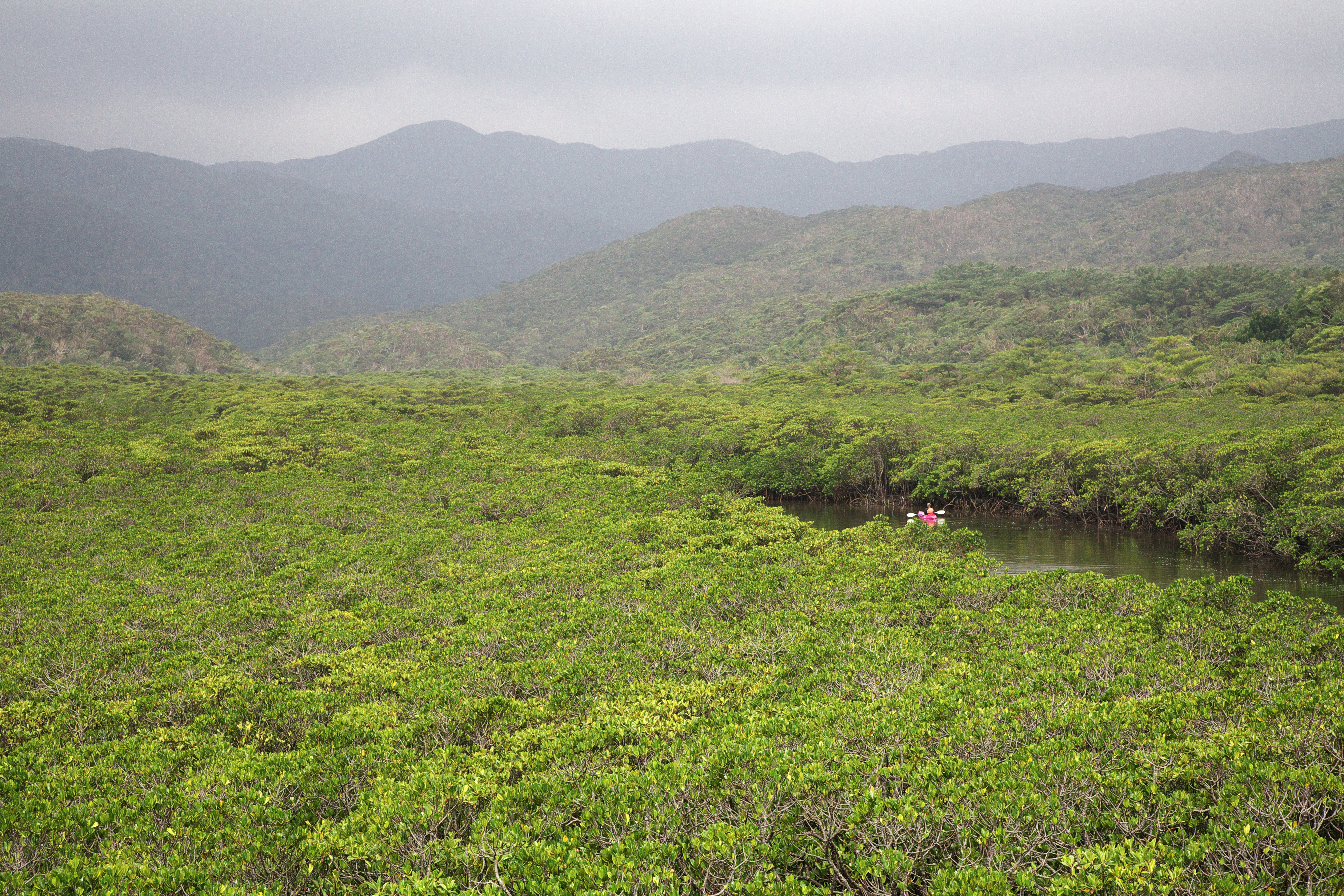 川辺から遙か彼方の山までずっとマングローブの林です。凄い風景ですね。