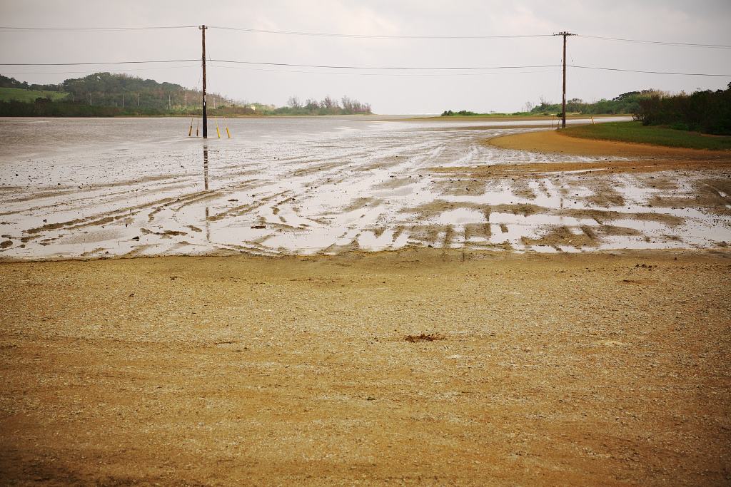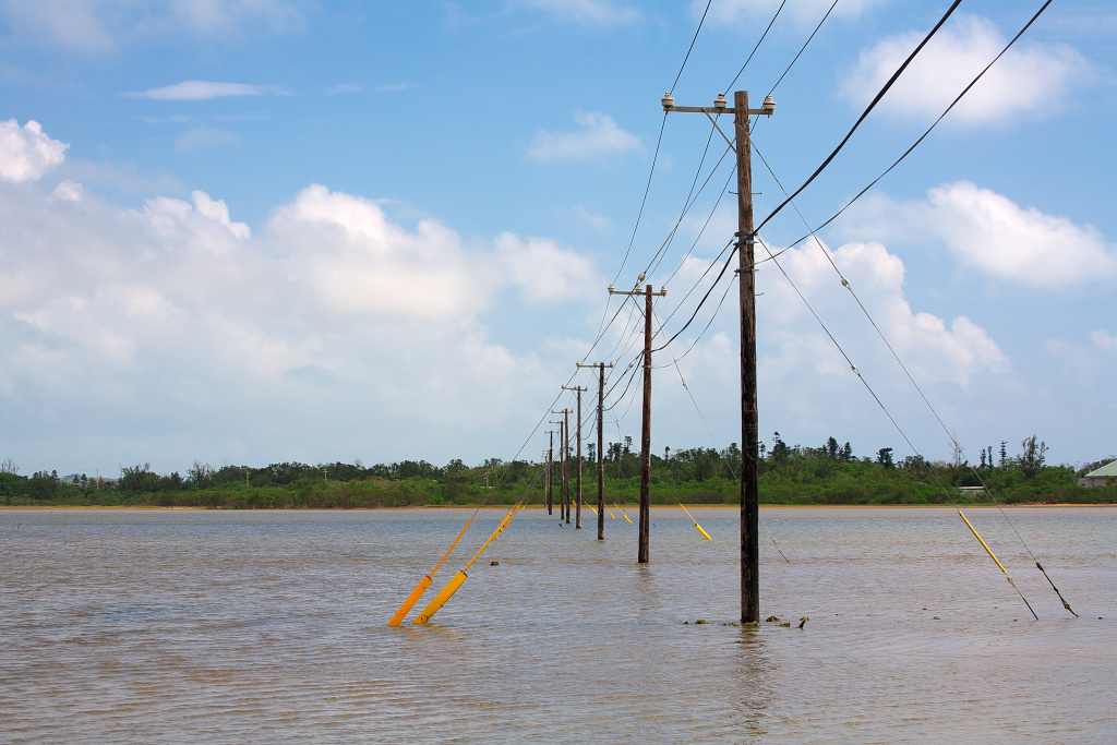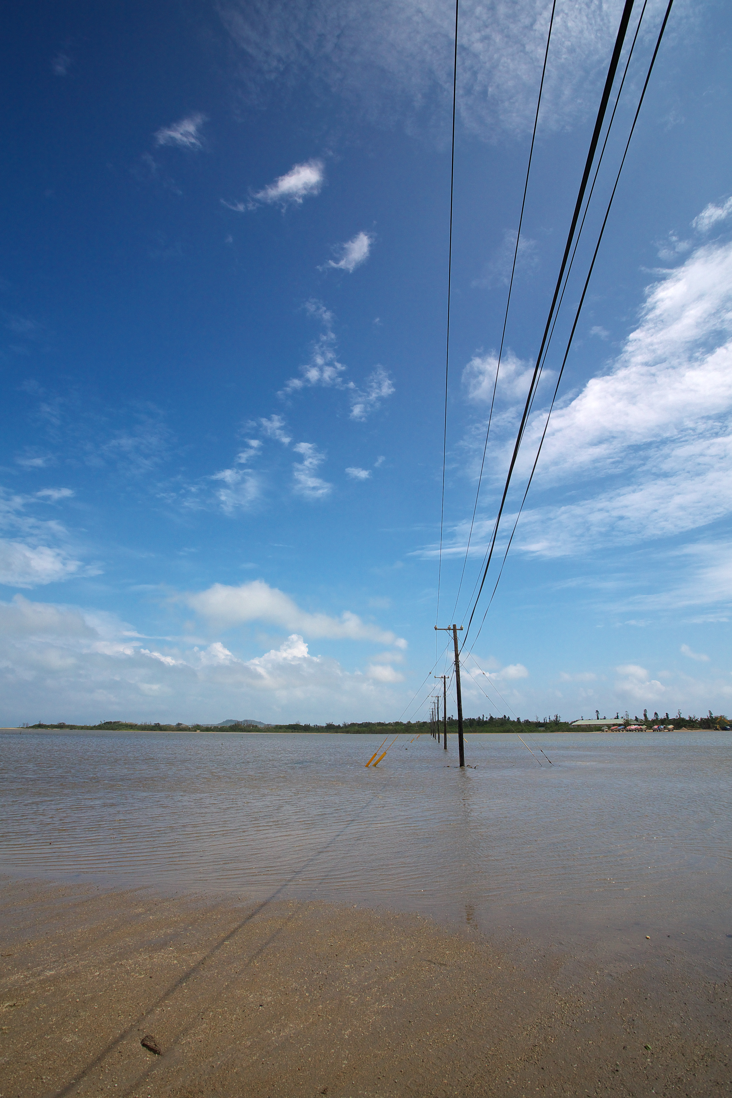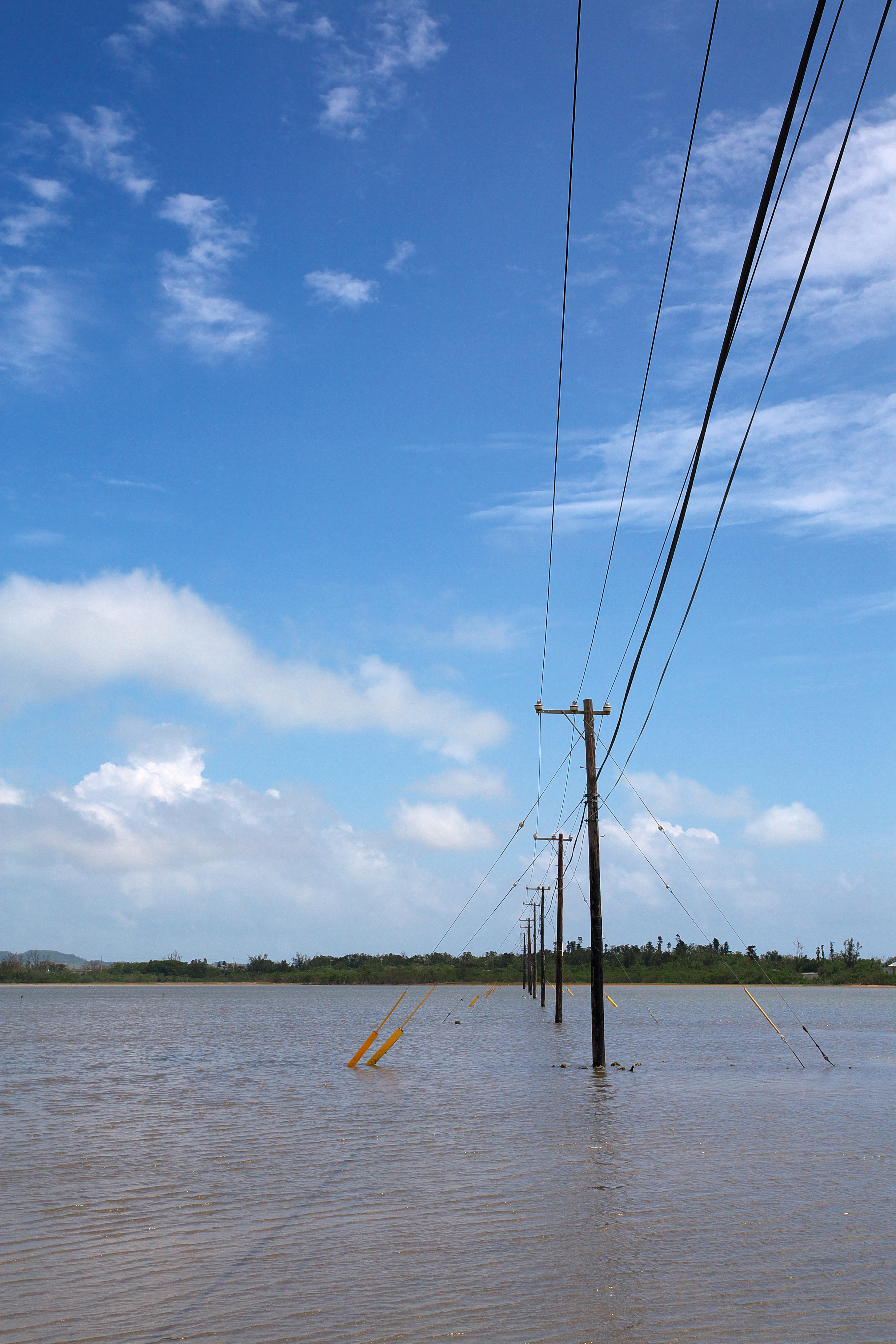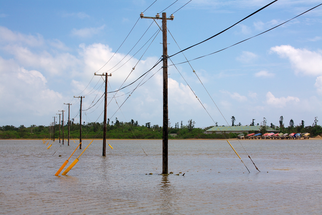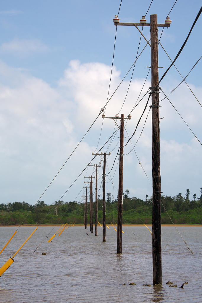 電柱が海の中に並んで立っています。全国でもここでしか見られない光景です。
