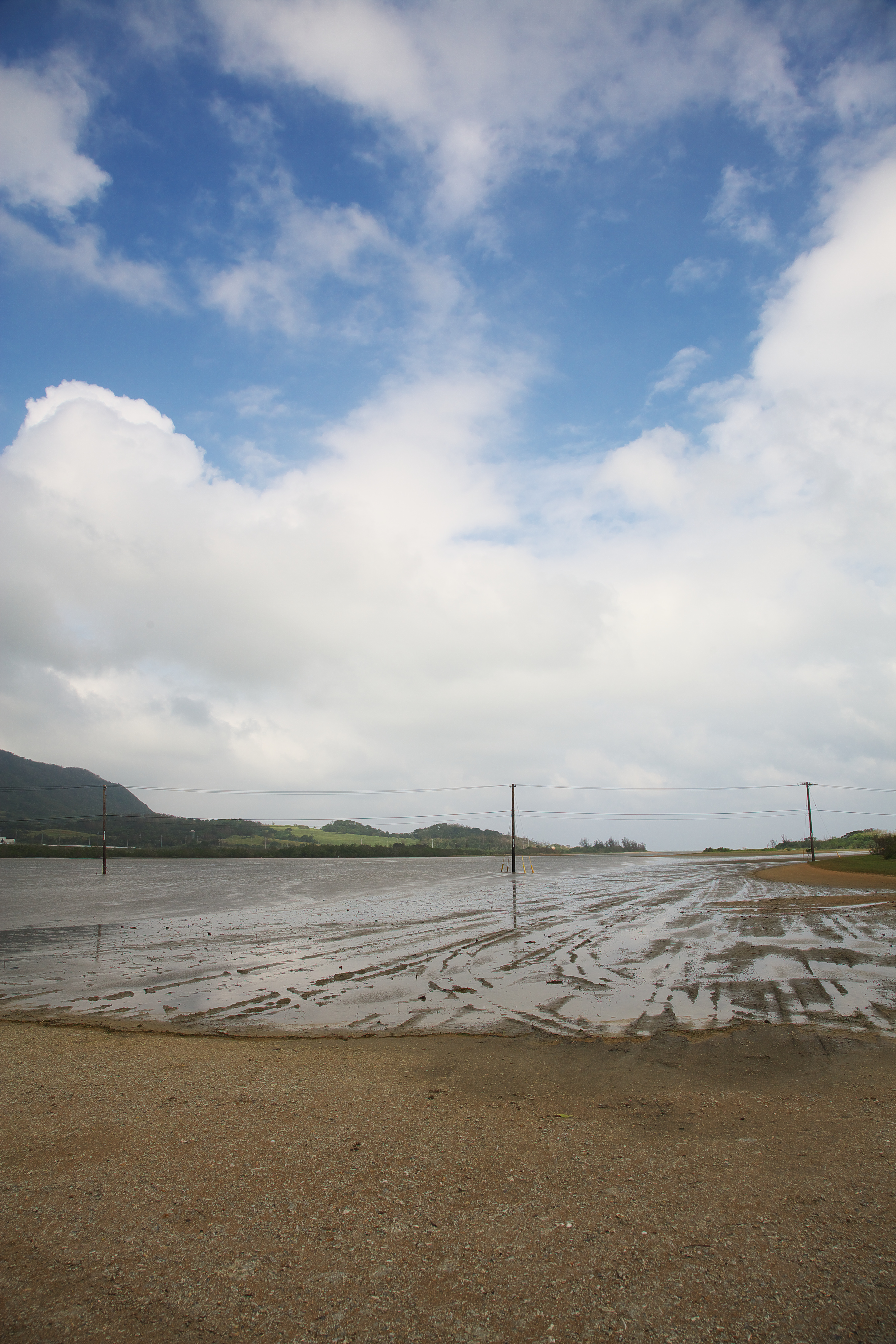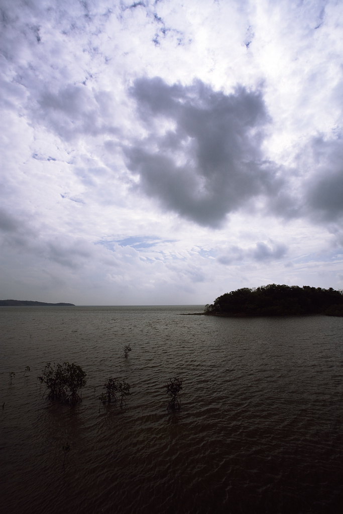 台風が去ったばかりで、大きな黒雲が空から押し寄せて来ました。