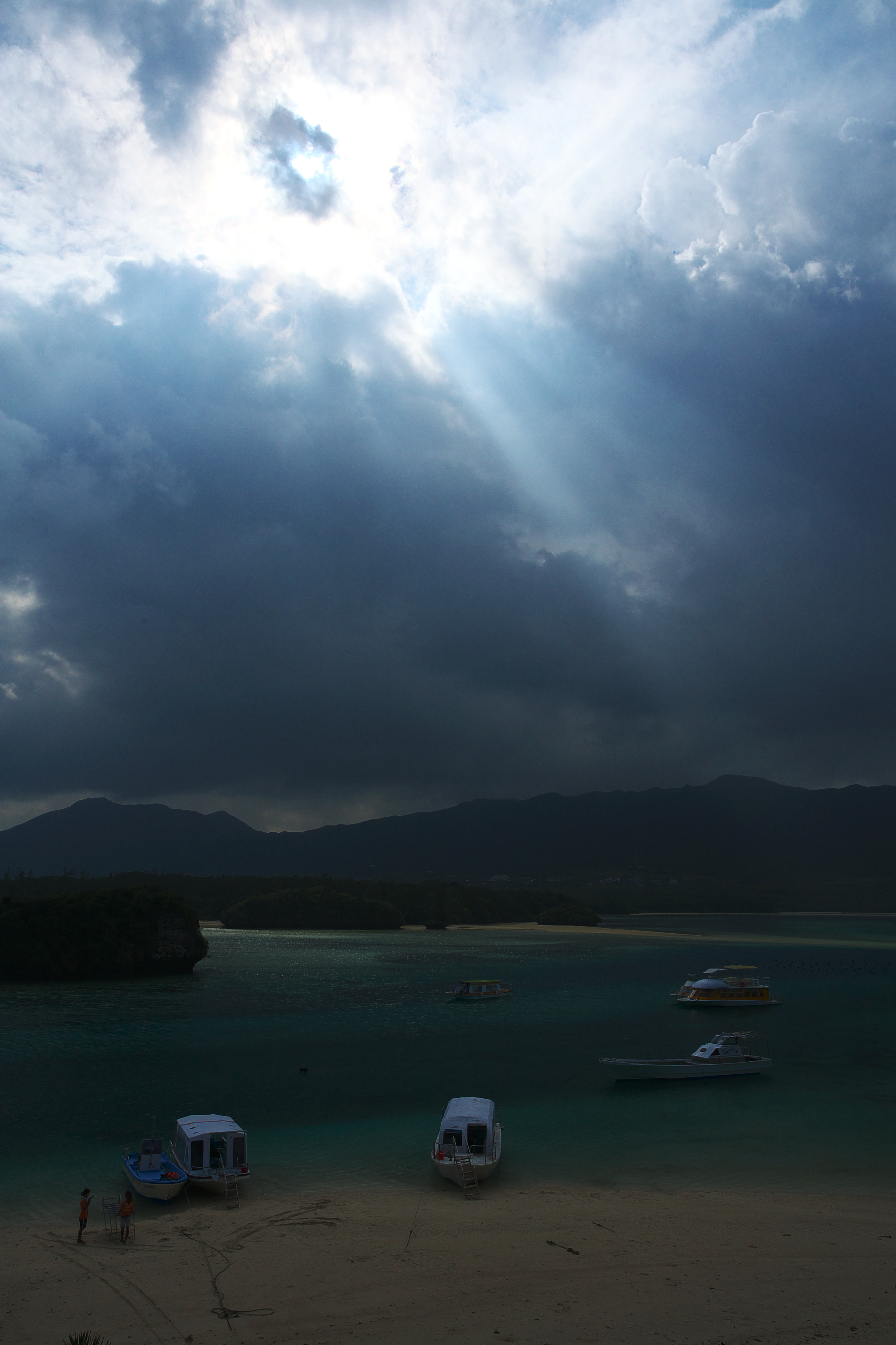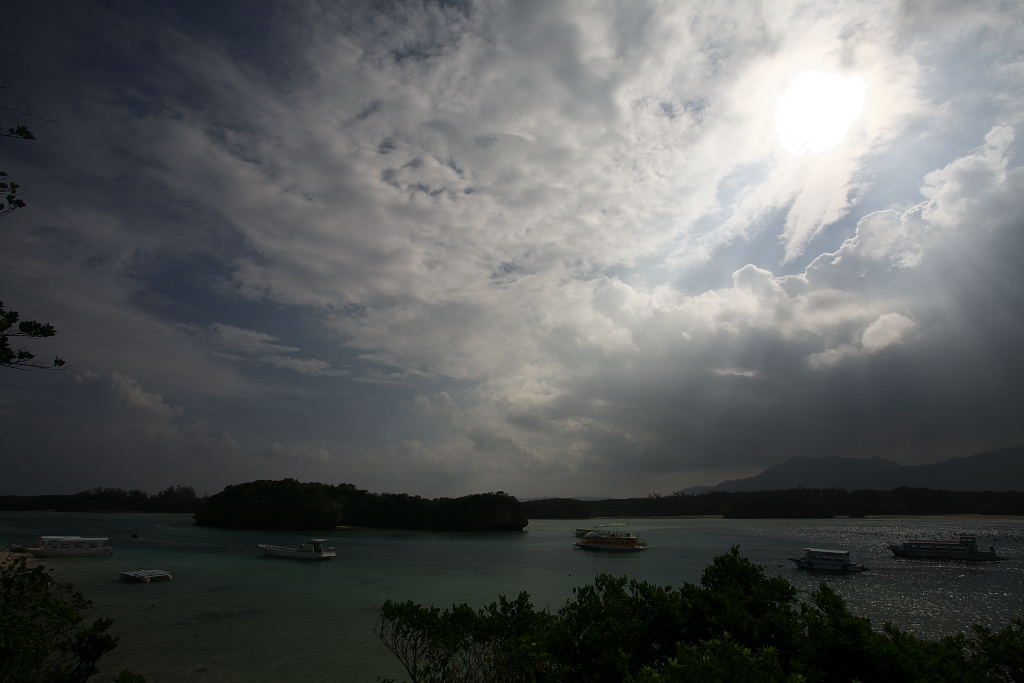 台風の残存雲の中から太陽が顔を出した瞬間のショット。