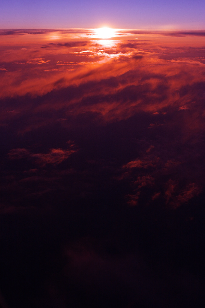 かなり高い高度から見る夕焼けです。