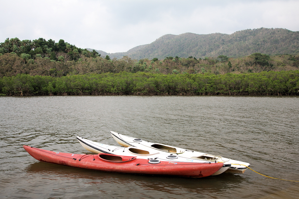 マングローブの中を流れる川岸にあるカヌー乗り場です。