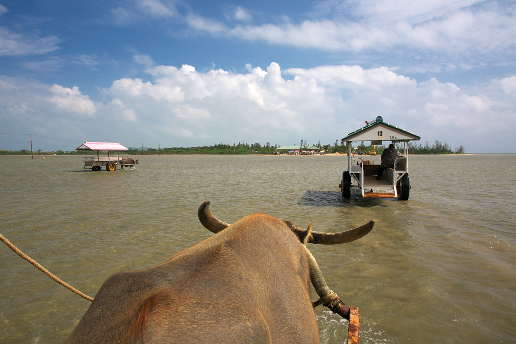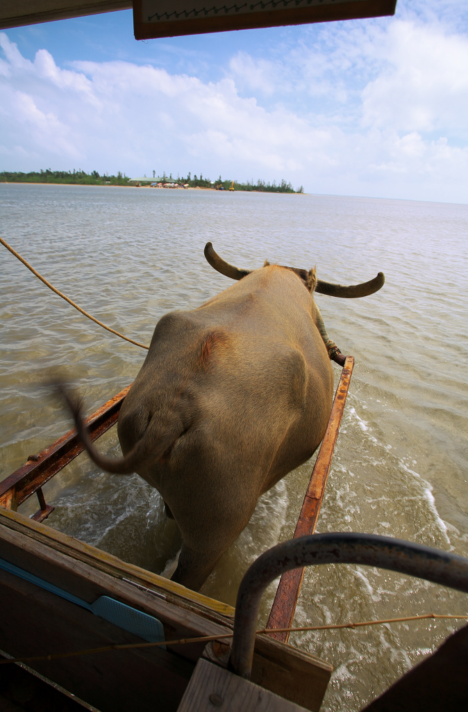 途中で帰りの水牛車とすれ違います。いかにもアジアという感じがするゆったりとしたアクセス手段です。