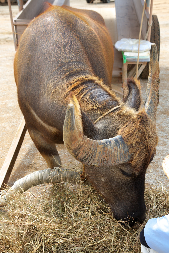 お食事中の水牛です。毛並みが良いですね。