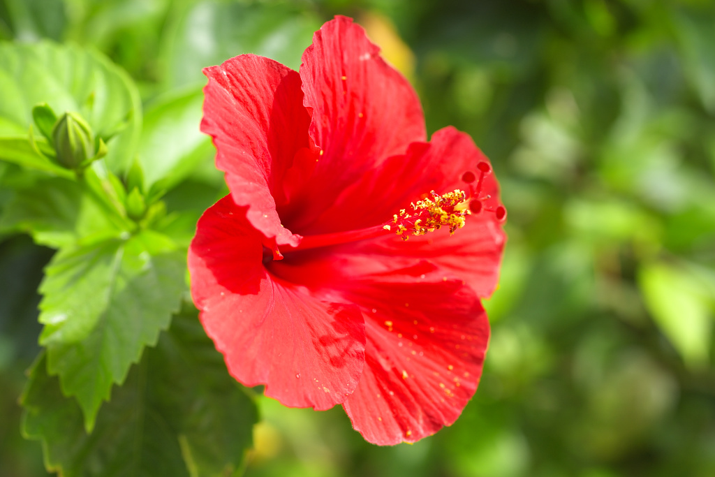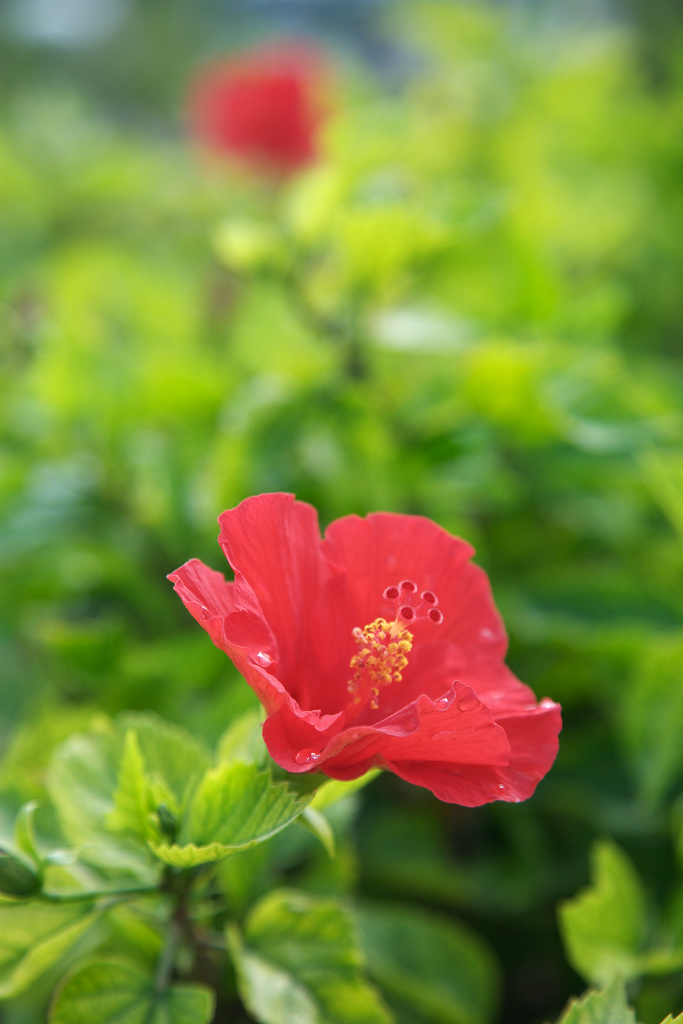 ハイビスカスは街路樹のように咲いています。