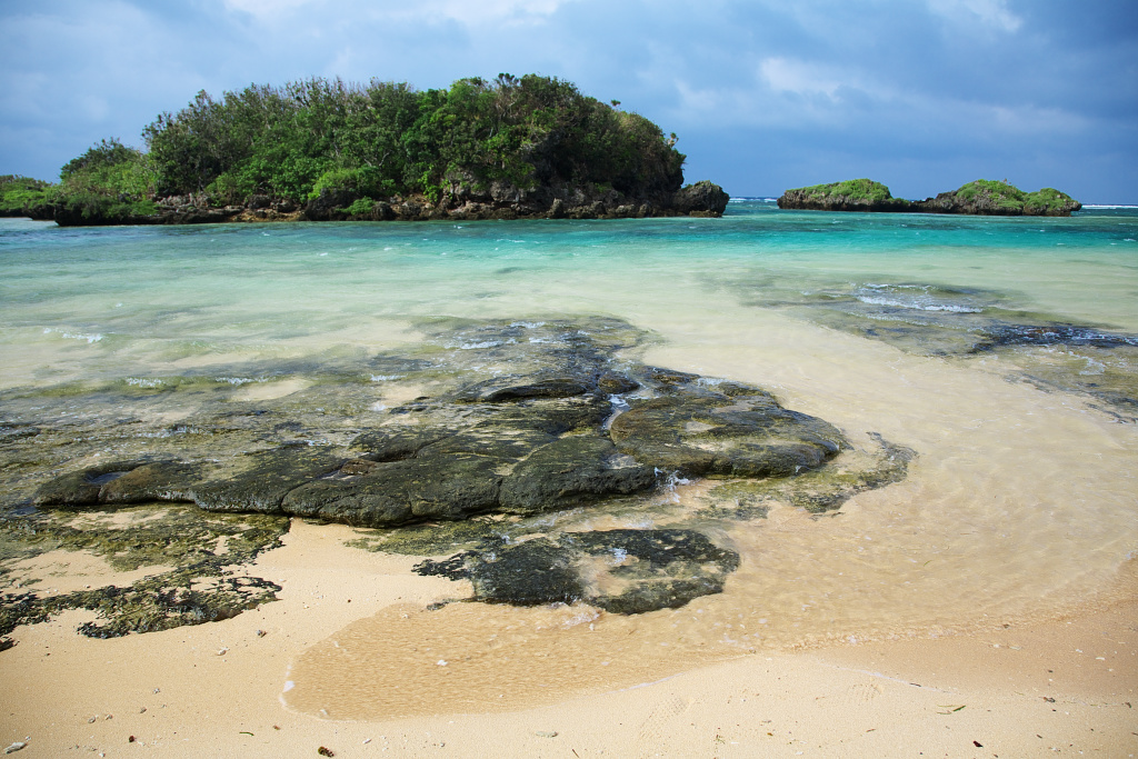 岩がごつごつとしています。海中では珊瑚礁があるのでしょうか。