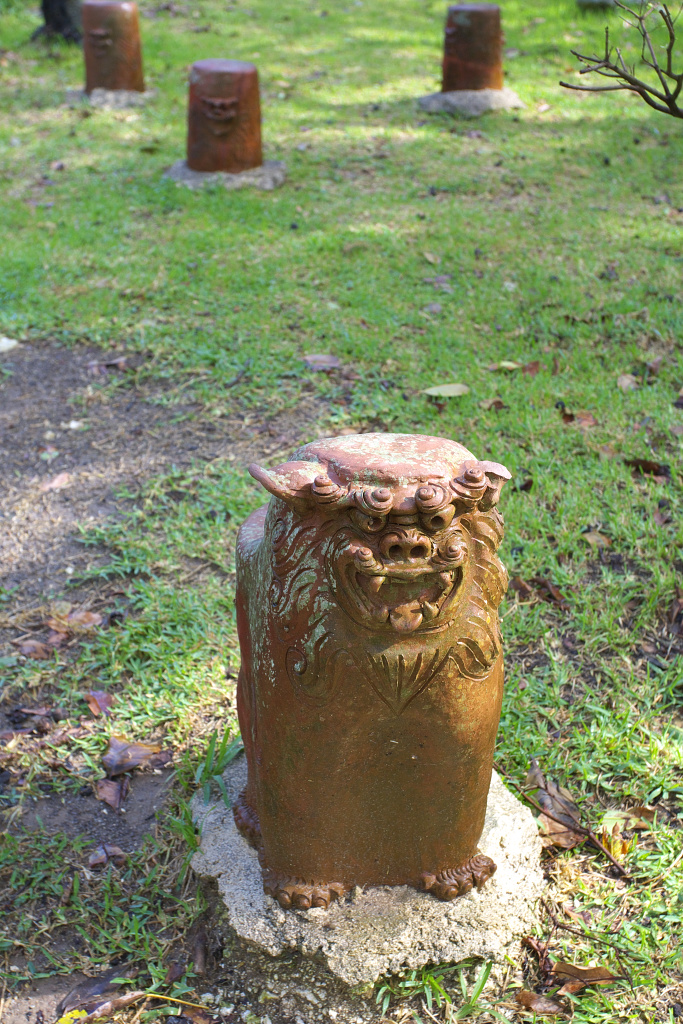 シーサーの形をした可愛い置物です。いくつも並んでいます。