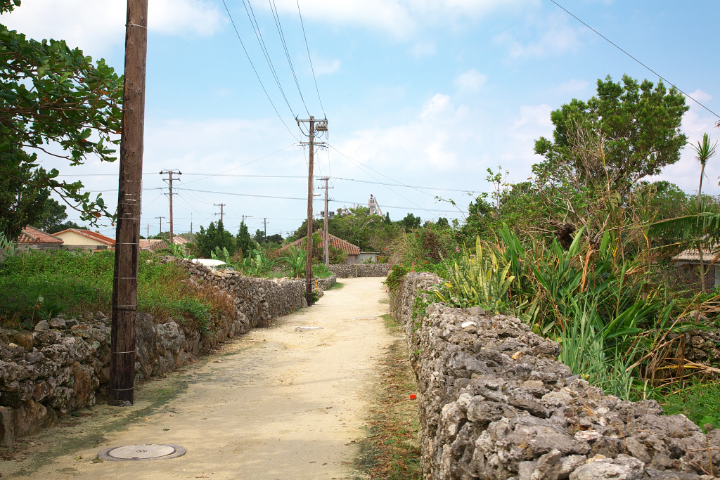 舗装されていない道に沿って石垣が続いていきます。